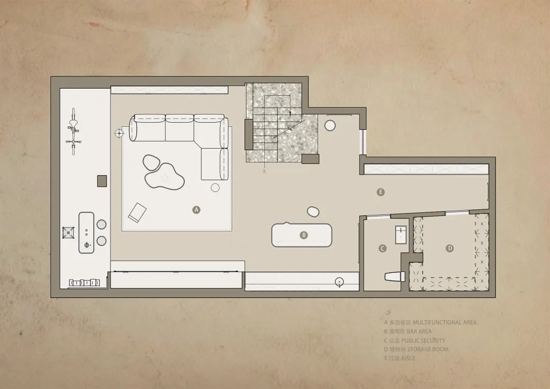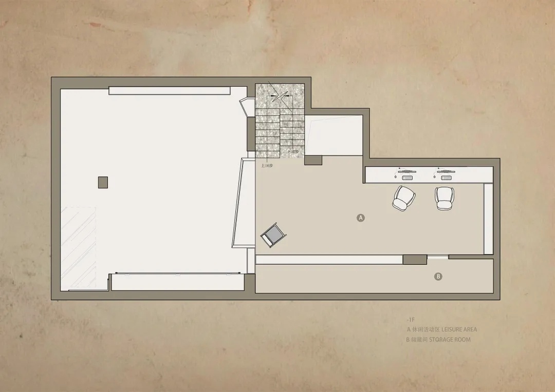 负一层通过挑空与负二层构成天然的连通,扮演着过渡空间的角色。向外探出的盒型结构,让互动更富趣味——无论是人的对话,还是空间的错位与嵌套,都在不同寻常的处理方式中,获得妥帖的观照。黑色的玻璃半墙,亦做色彩上的点缀,为负二层的休闲区带来层次与结构皆具张力的场景衬托。
