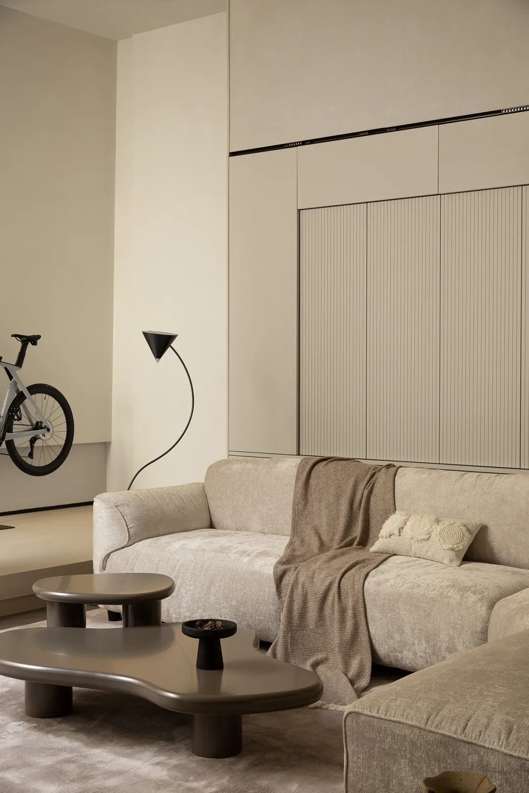 这是一对年轻夫妻的家,二人对生活的轻盈见解,被设计师转译为洗练的结构线条与柔和的氛围用色。上下四层的宽敞格局,不因当下的风格趋势而追求极简,却在回归生活的本质中,以轻侘寂杂糅现代极简,勾勒出家的纯粹模样。