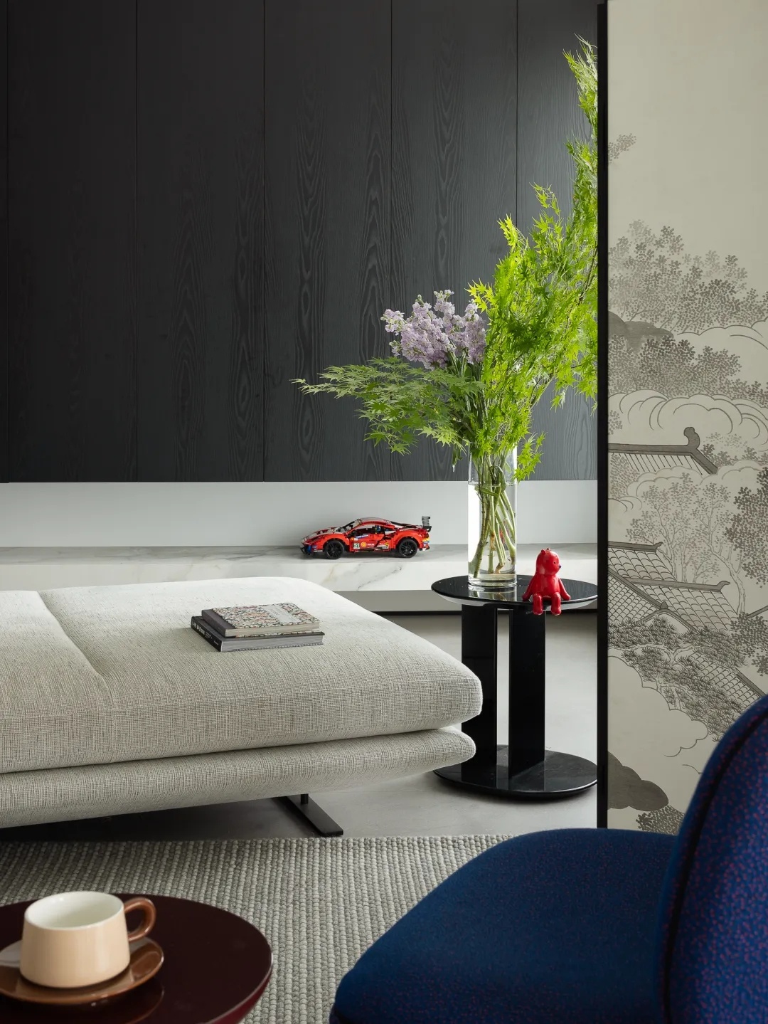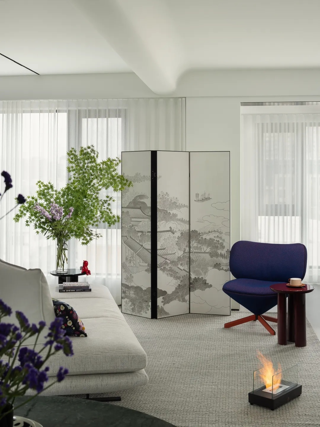 在每一寸空间中,自由流转的设计让生活回归轻盈质感。跳脱传统思维,设计师大胆选择了颜色鲜明的摆件和休闲椅,为整个家居环境注入活力与个性。真丝手绘屏风静静伫立,为家增添一丝东方禅意,在静谧中展现出独特的艺术美感。