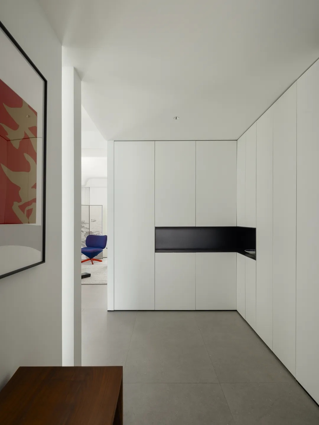 玄关采用简约风格,线条流畅,功能实用而不张扬。墙上挂画象征着“入户大吉”,引领居者步入这个自由的居住空间。