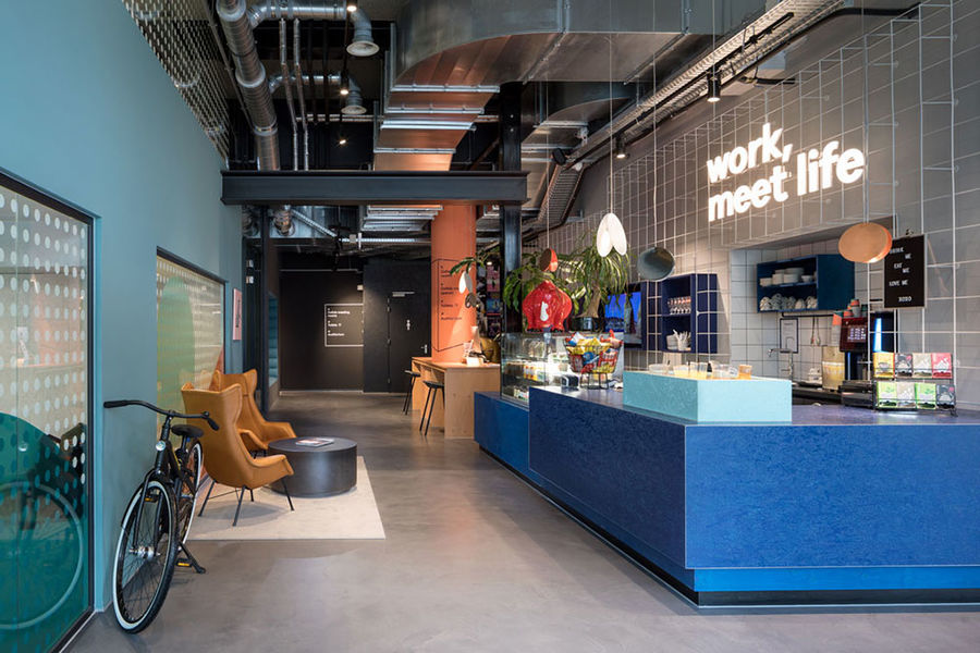 设计说明:TSH Collab联合办公空间位于学生酒店集团阿姆斯特丹的旗舰店,占地1150平方米并拥有灵活的工作空间、封闭的办公室、一个厨房、会议空间以及一个150个座位的礼堂和一个Het滑稽剧场。其前身是Het办公室大楼的一部分,Ninetynine工作室用蓝色和绿色的办公室盒子,分层和连接创造了第一个办公空间的第一个位置。