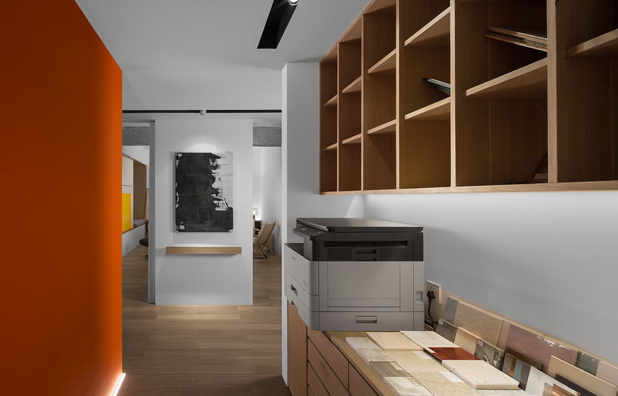设计说明:Kayan space office 位于重庆渝北中冶.北麓原顶楼单位,窗外俯瞰保利高尔夫球场,视野非常开阔。在开言看来,经由规划合理的空间,来探索精神中普遍性的平衡或协调,是广义上的设计思考。在规划自己的办公空间的思考中,我们在空间视觉上通过线面关系,动静之间,描绘出符合其自身呼吸的韵律,进退皆宜,整合空间中窗洞、梁之间的联系,形成完善的视觉效应。