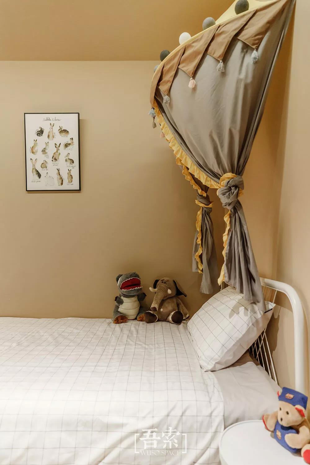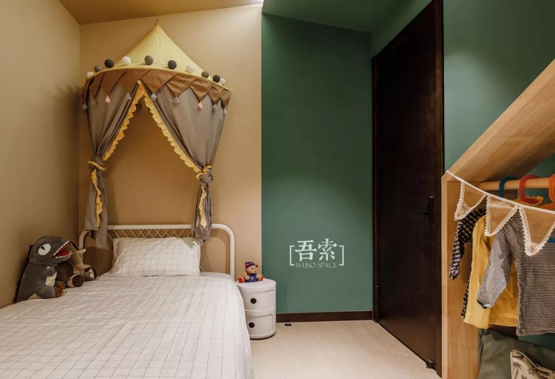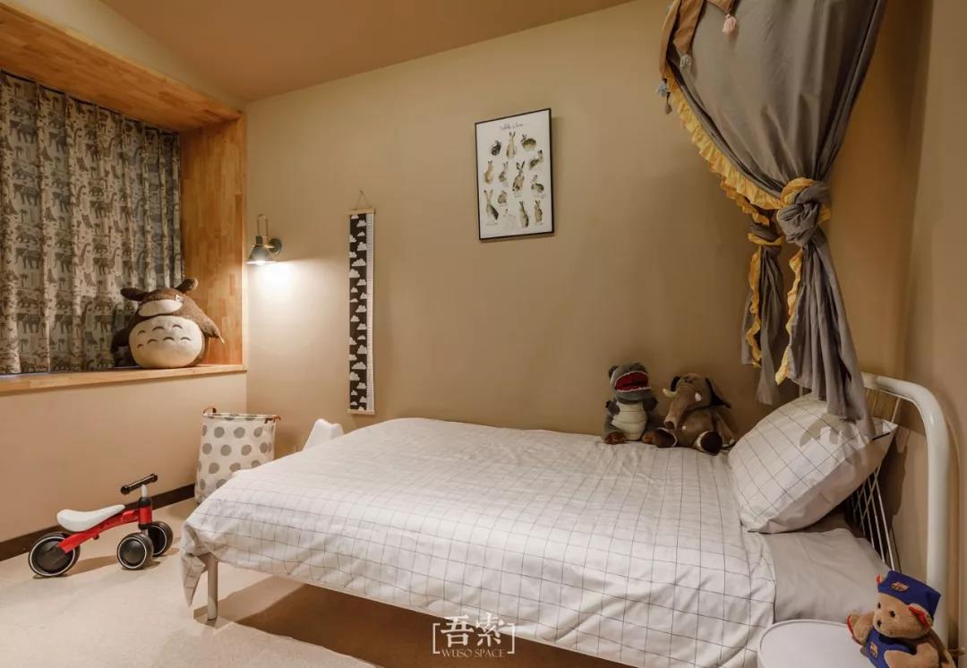 伴随孩子成长的空间更多的要考虑符合她小小使用的尺度,降低高度的开关,实木板制作的小挂衣架,圆角的家具