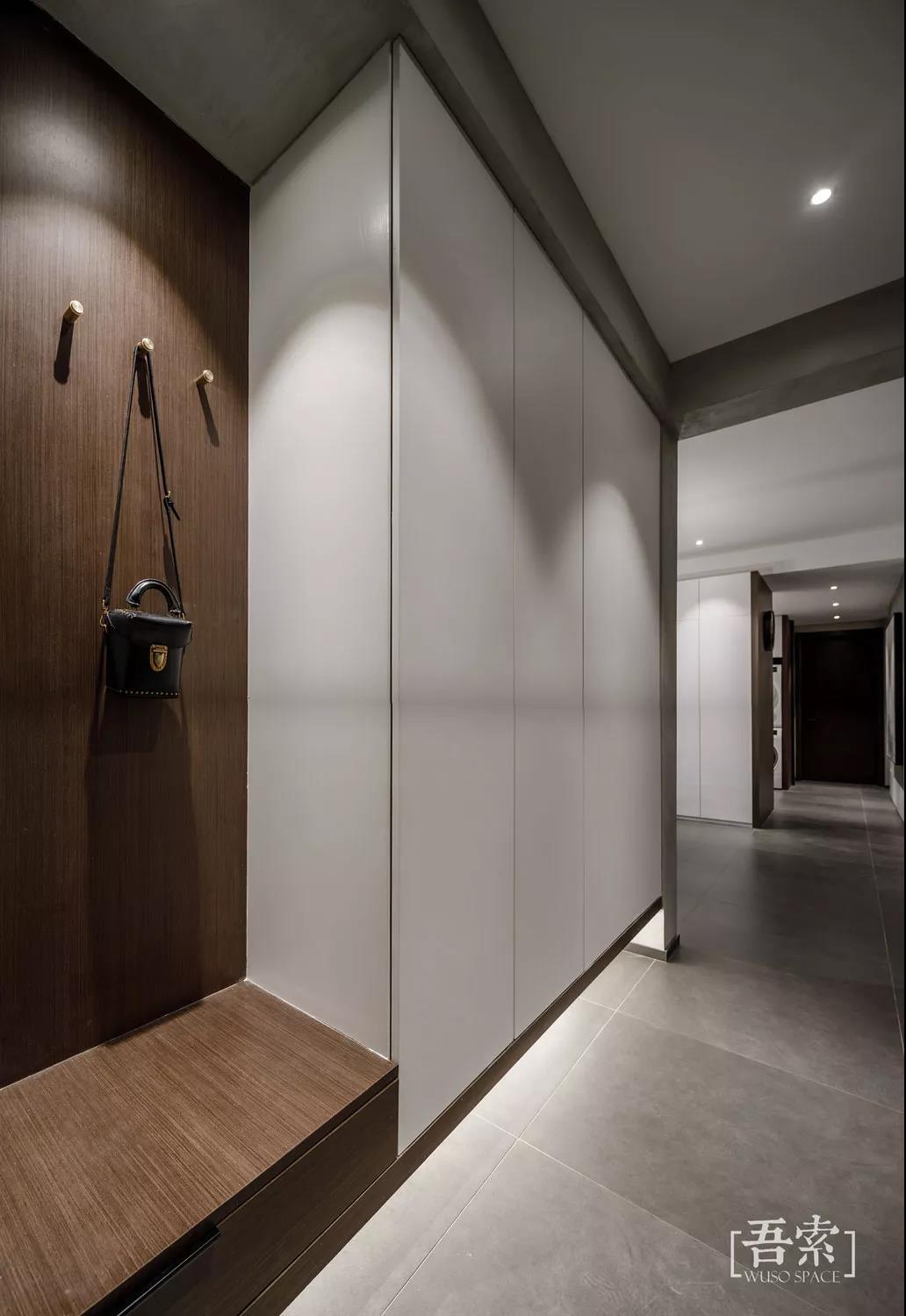 居室从玄关开始,要解决的问题是我们回到家的第一件事情以及出门前的最后一件事情,换鞋,收纳,整理是每天都会发生的,简以用之,最大化的满足收纳