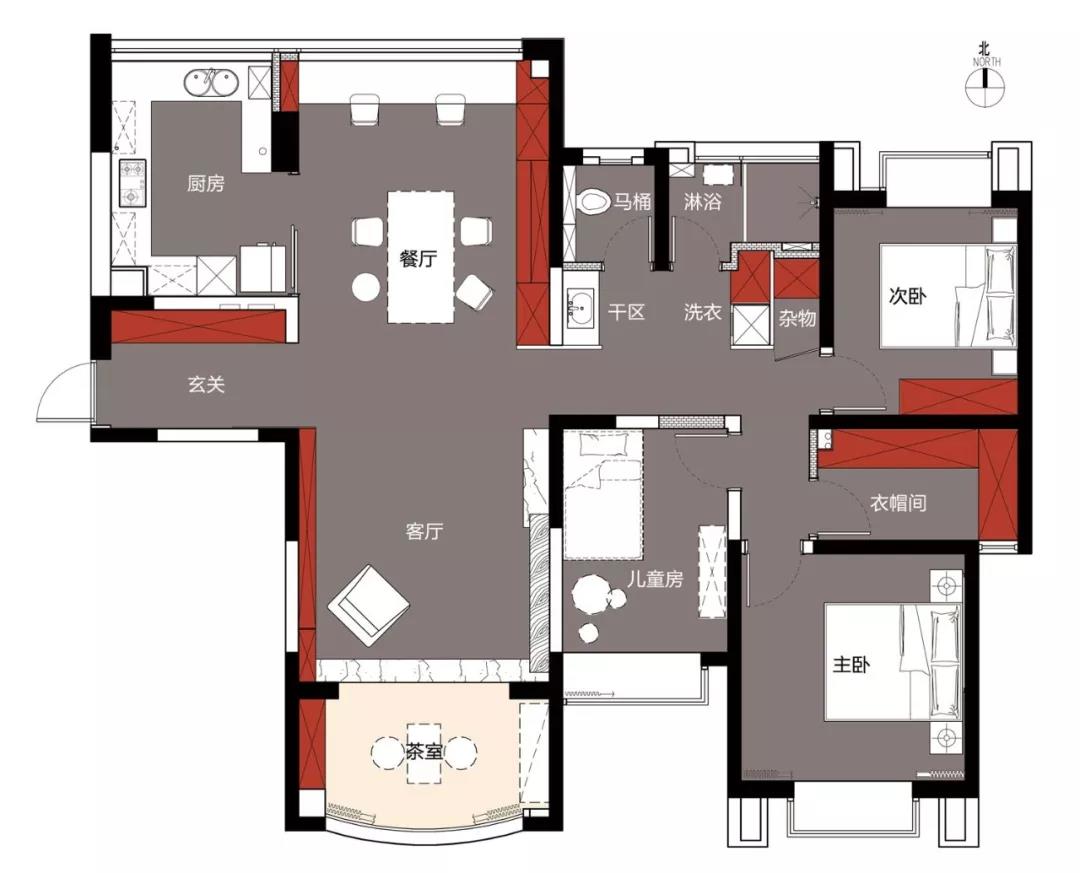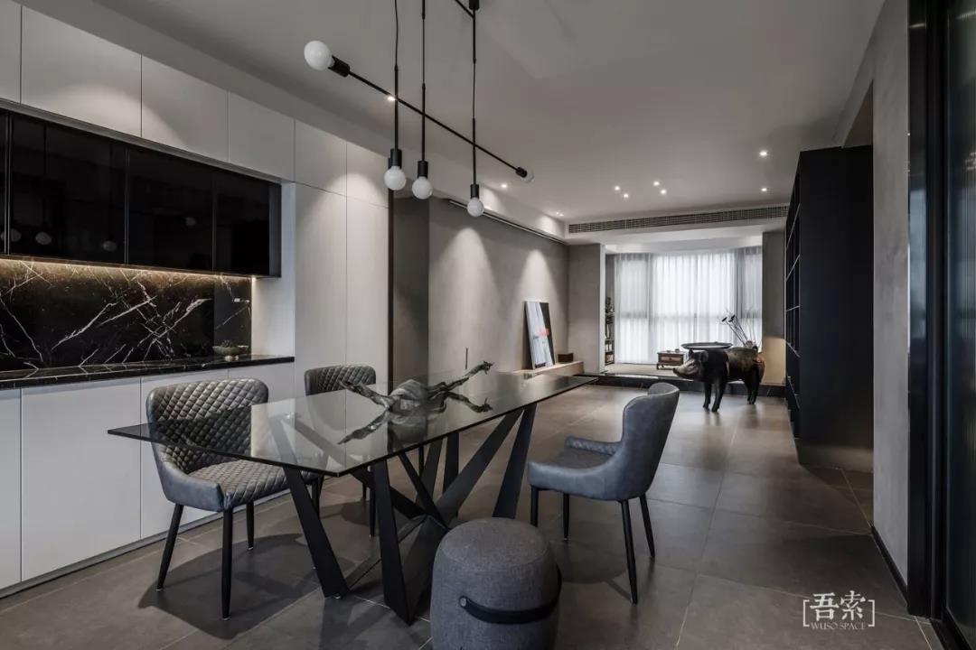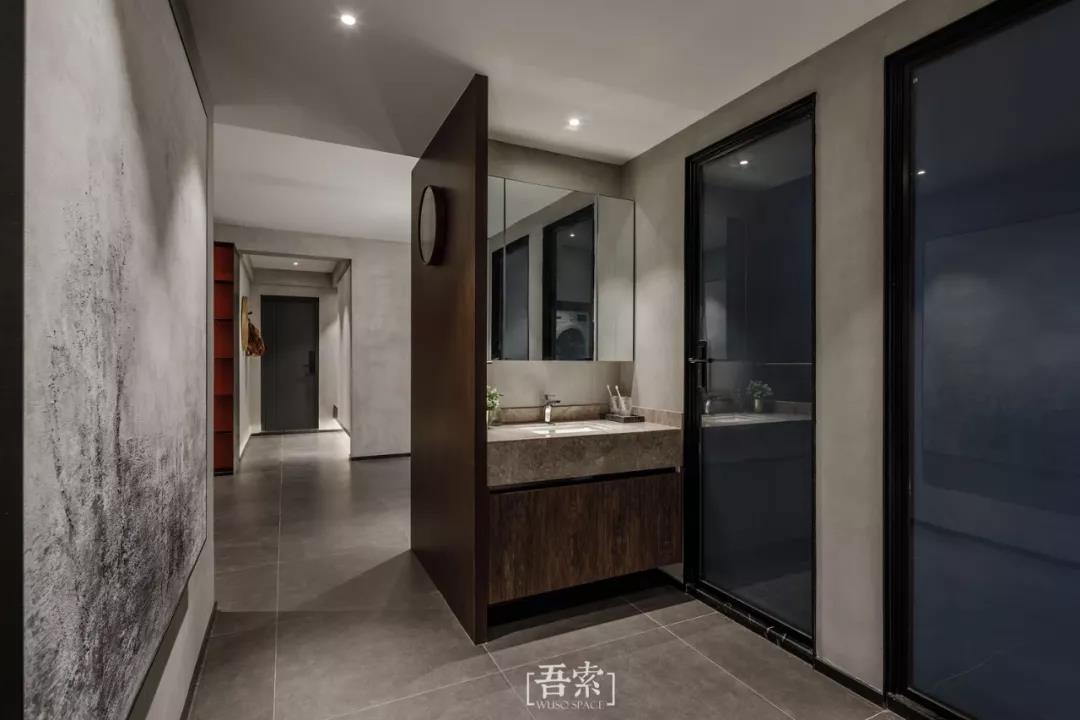 每一个空间对于我们生活它真正是用来做什么的,思考每一平米要用来做什么而不是先入为主的设定了若干功能之后再把每个功能细化,一切设计的初衷应该回到最原始的目的,空间是为我们更好的服务。 首先 阳台被打通扩进客厅作为一个整体空间,利用地台高差的方式让阳台成为一个独立的茶室空间,他是距离阳光最近的地方,我想让阳光离我们的居室更近,席地而坐,一茶一书,虽身处高室,四季却清晰的触手可及。利用客餐厅的面积设计了一个大长桌,解决我们经常在家里使用电脑的需要,那为什么还需要一个书房呢?真正意义上的四分离卫浴设计,盥洗,如厕,淋浴,洗衣干衣完全是独立互不干扰的空间,那卫生么还需要另一个卫生间?也让主卫改造成的衣帽间成为可能,一台烘干机也让阳台升华成更能满足我需求的区域。