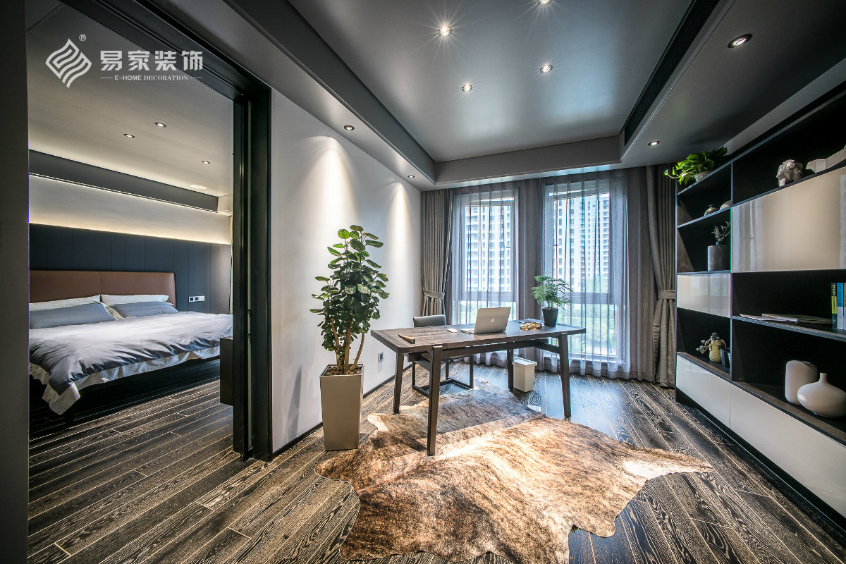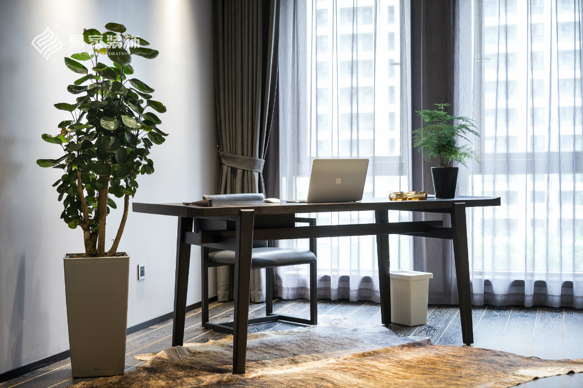 书房选了一张条案式书桌,让极具现代的空间融入了一丝的中式元素,别有一番东方韵味。