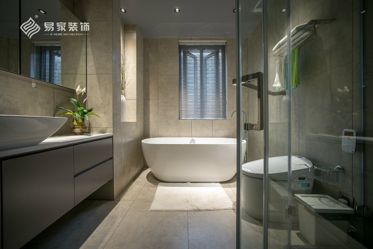 卫生间瓷砖突破常规的平铺设计,错缝的铺贴让空间看起来更灵动。