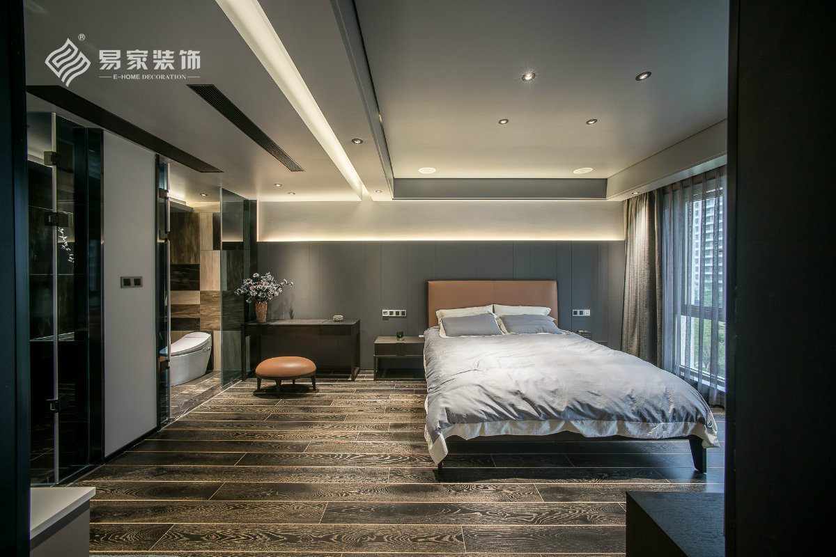 主卧套房双开门设计,让视觉效果开上去更加的开阔大气,3公分小边框门套设计淋漓精致的体现了现代设计精致