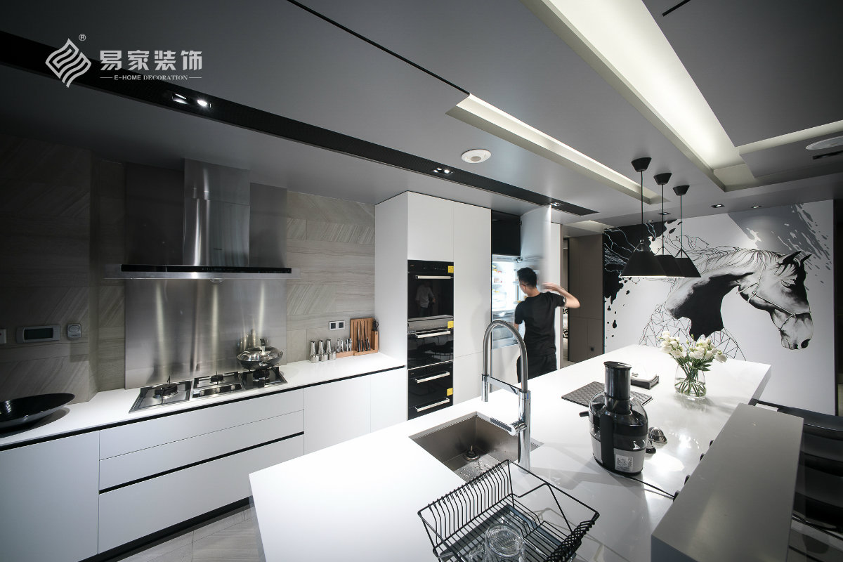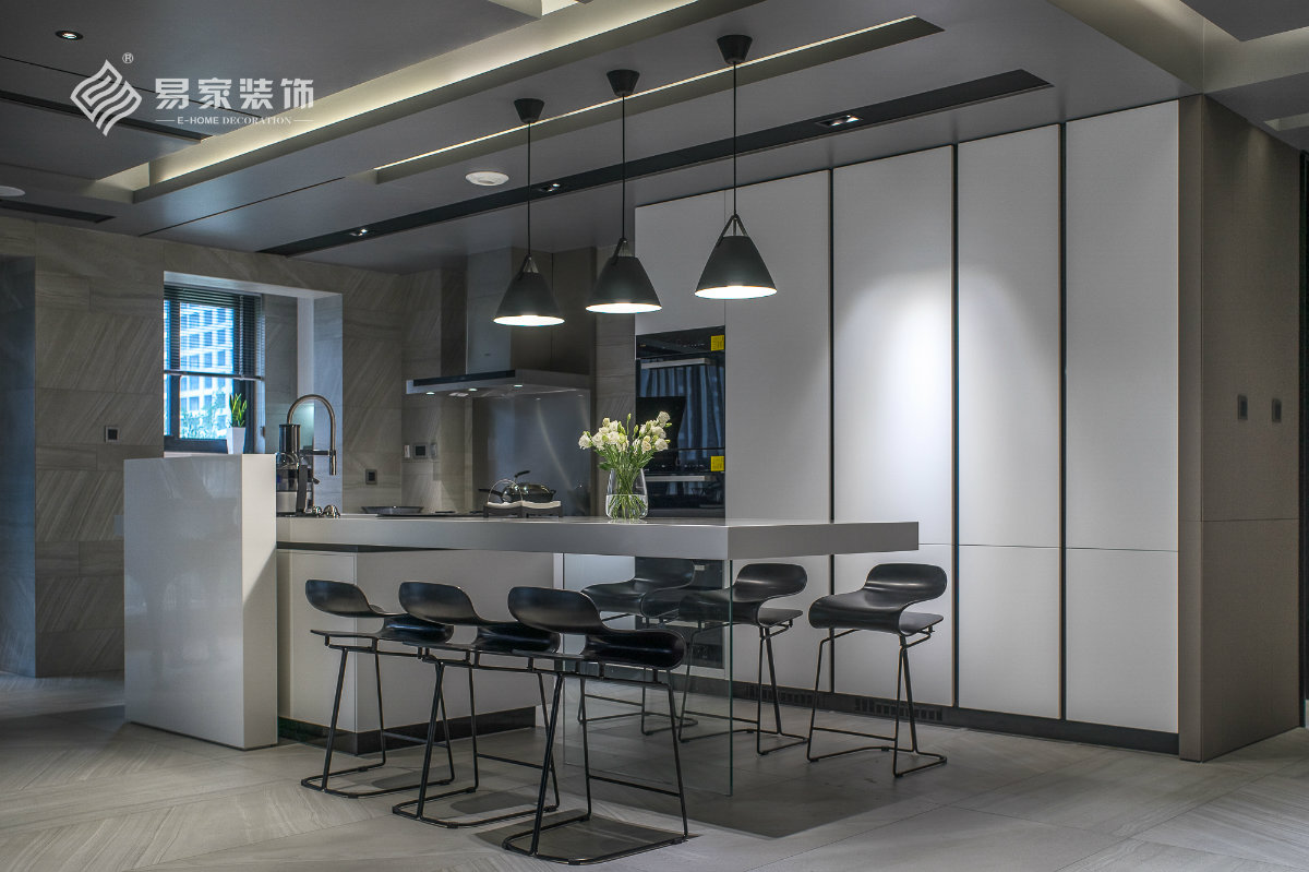 岛台的设计手法让视觉有种突破重力学的效果,进口哑光多面砖配合手绘墙的设计,让整个空间增添一分灵气与创 ...