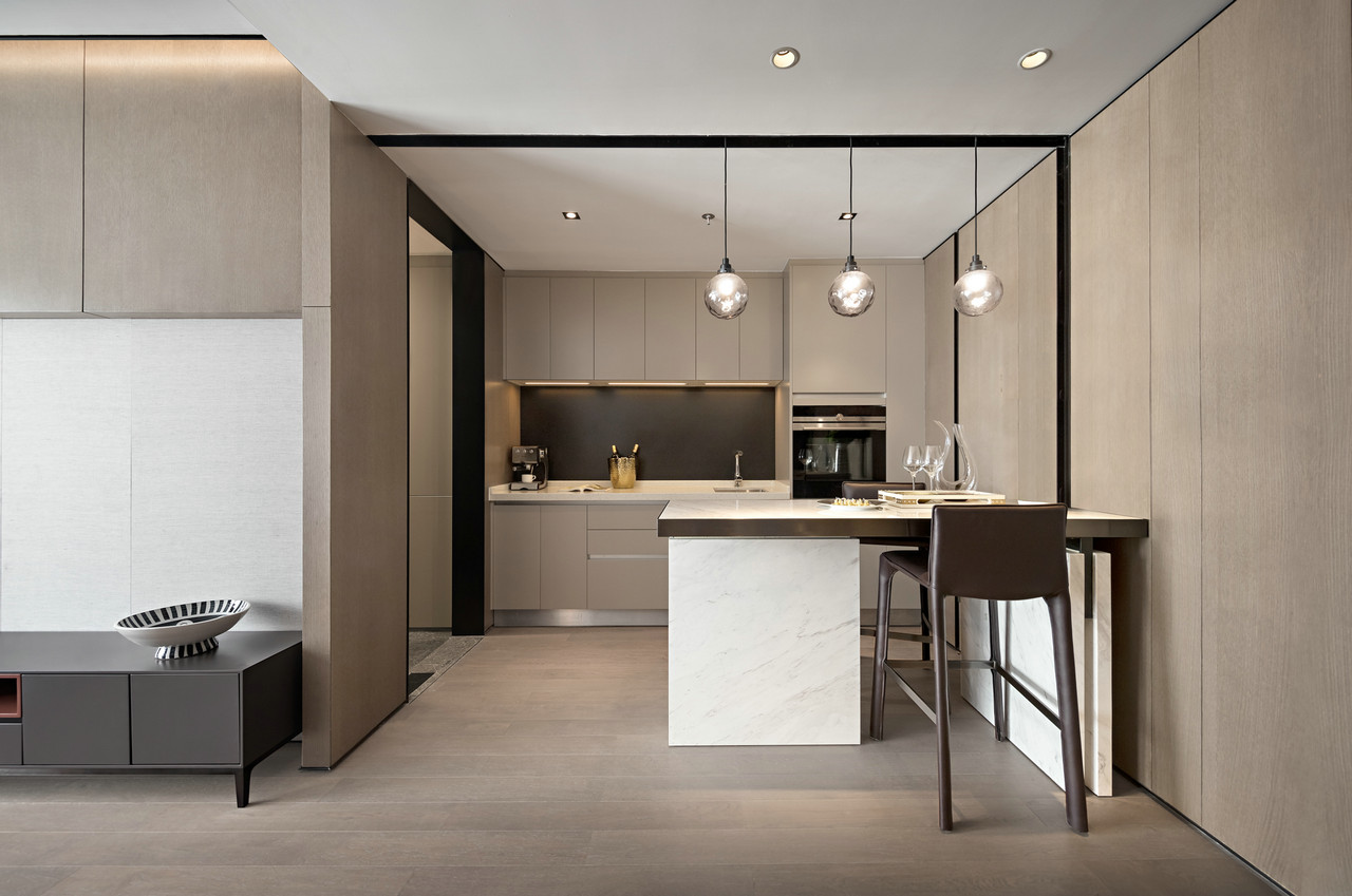 旧有的价值体系,被瓦解碎片化,变成多种形式。简单中透出时尚,弱化突兀过度的厚重,让空间轻盈起来,强调实用性,达成一种轻奢质感,这是如今定义都市精英生活品味的一贯主张。