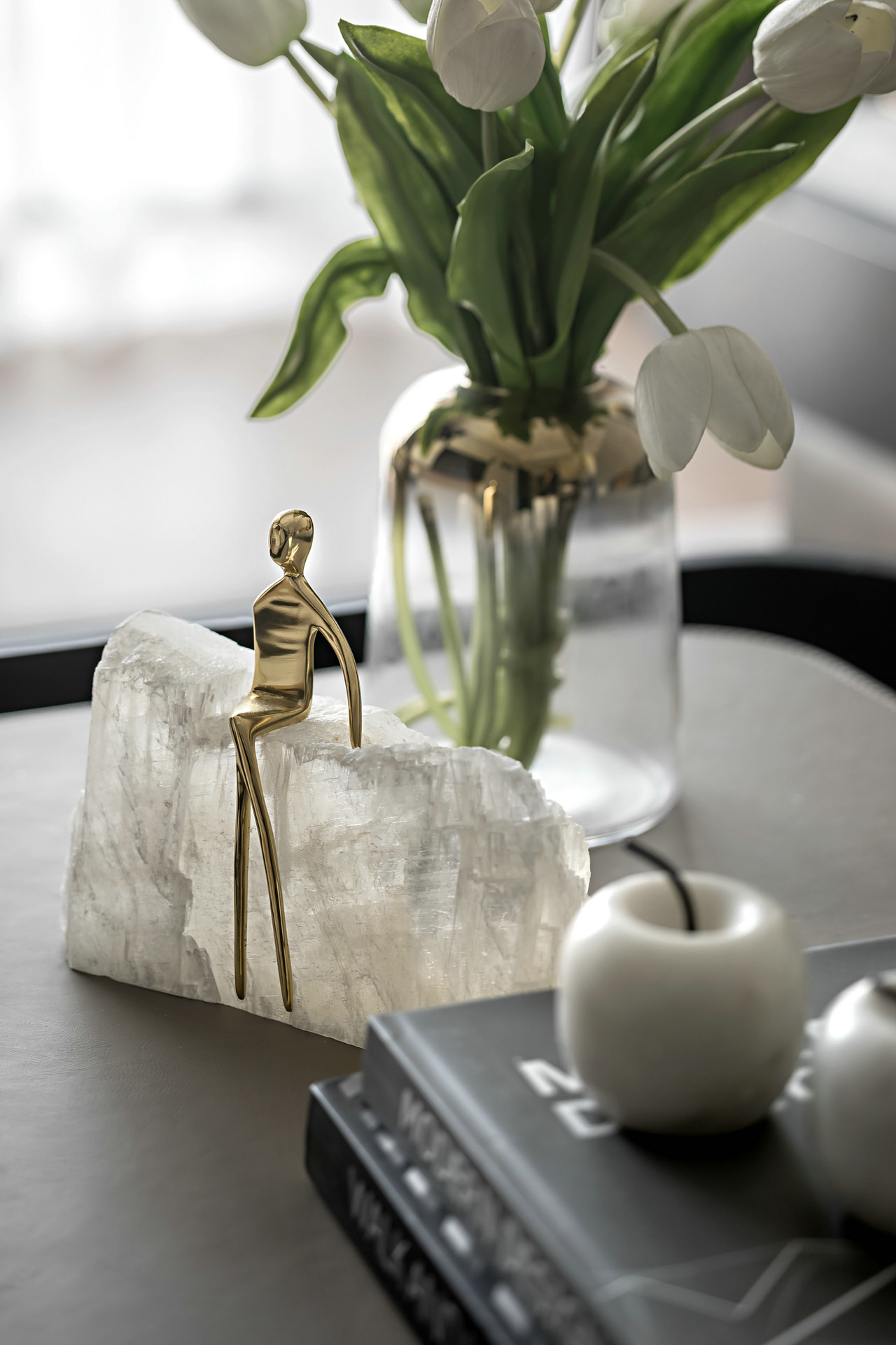 如同奥斯卡的小金人,陈设中引入各种姿态的人物,仿佛是生活在大房子中的童话人物。他时而托腮思考,抑或侧耳倾听活灵活现,增加着空间的趣味。