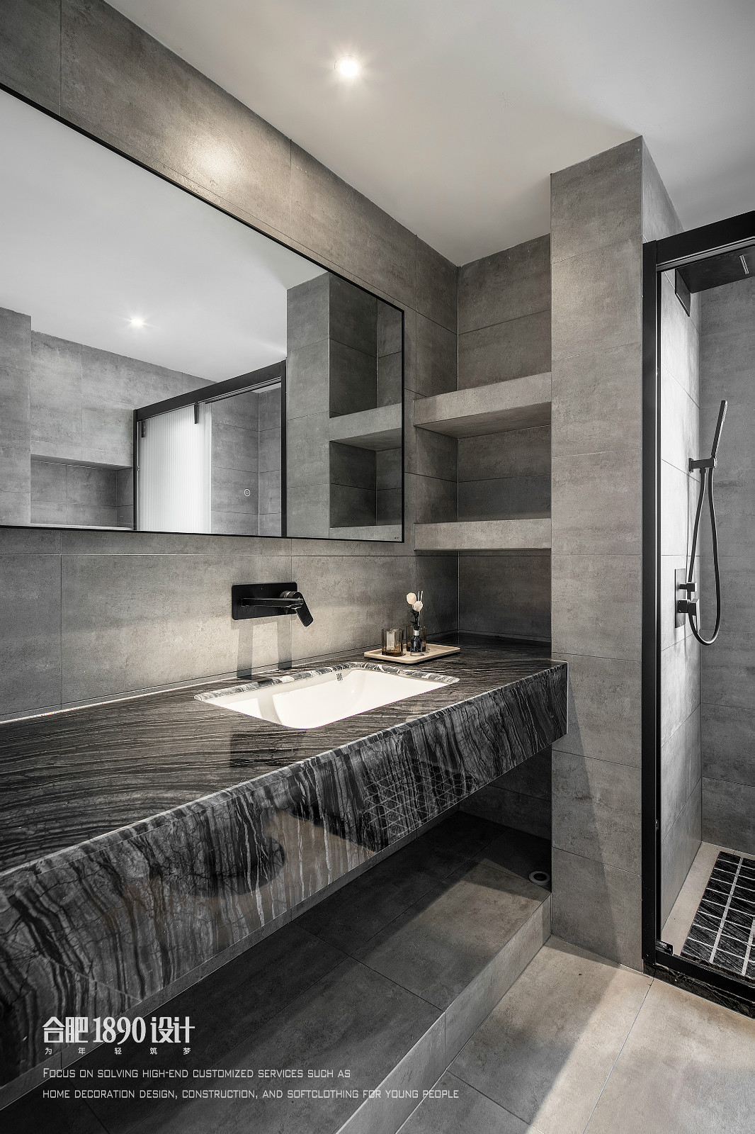 延续整体风格的色系,采用哑光面的灰色系瓷砖,搭配现代极简的黑色长虹磨砂门,显得个性时尚。