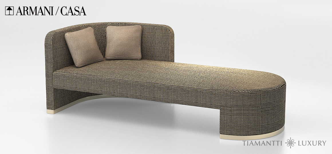 ARMANI CASA贵妃椅是对19世纪二、三十年代女性电影演员的致敬。铂金漆底座凸显椅子圆润迷人的曲线,也更为奢华。可从各个角度欣赏,底座镂空的设计轻盈感十足。