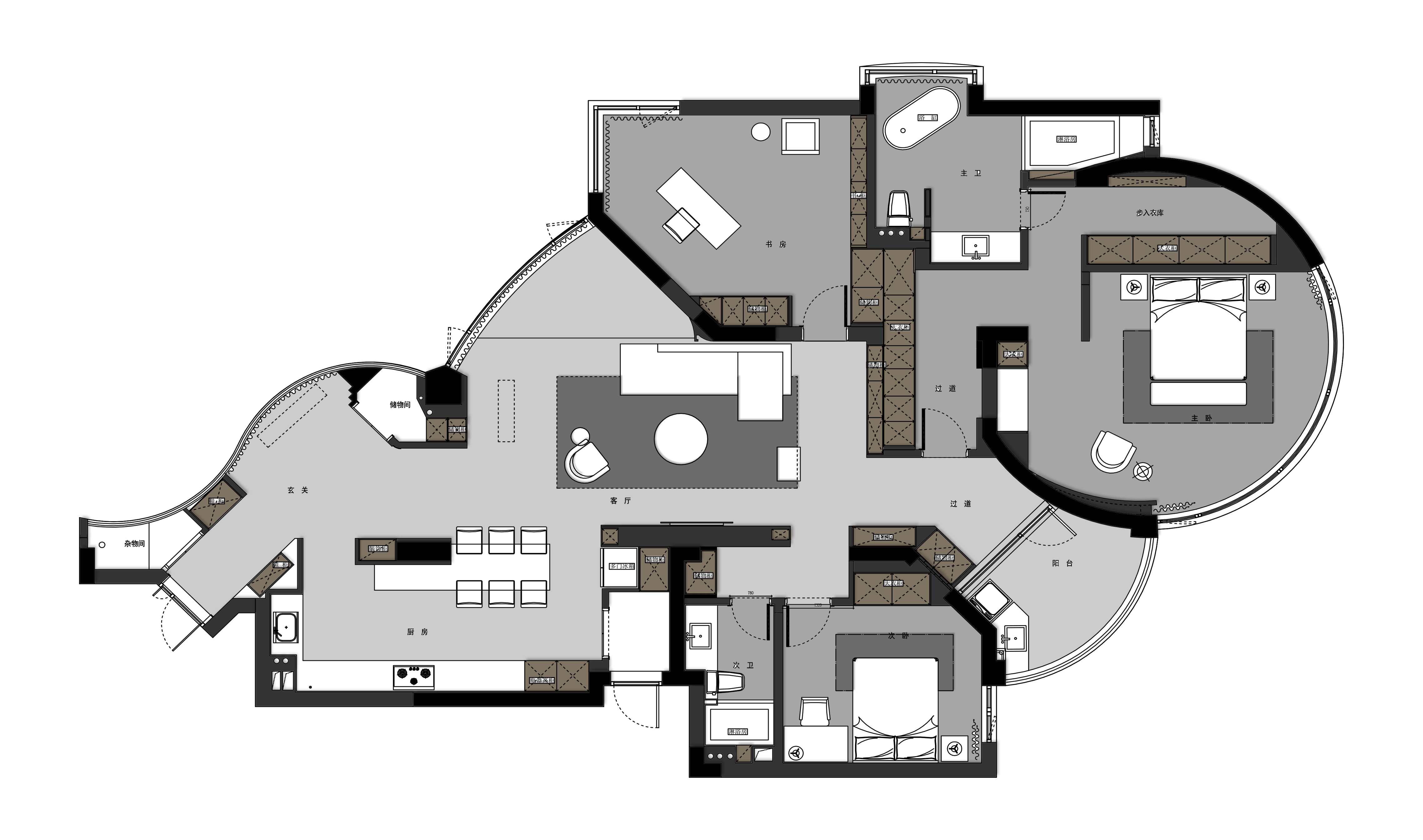 Large area of white space and radian are the elegant aria, and the details of the collocation density, together constitute the aesthetic space and rhythm, but also give space full emotional tension.