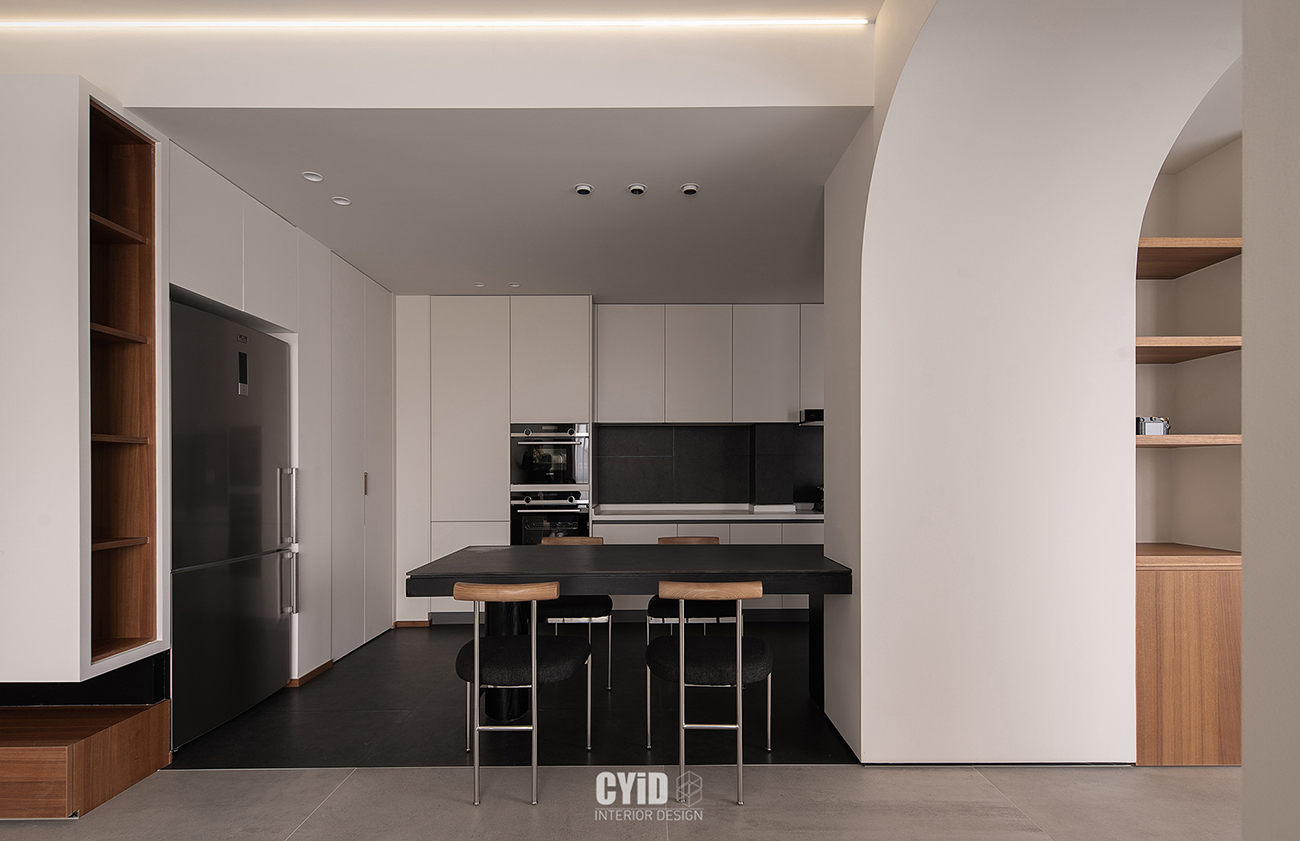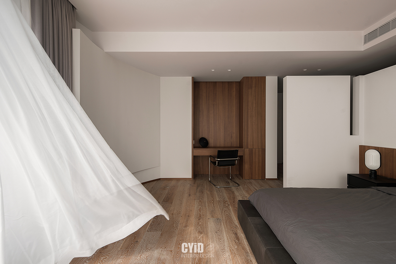 大面积留白与弧度是柔雅的赞叹词,与细节处的搭配疏密有致,共同组成了空间的审美和韵律,也赋予空间情绪满分的张力。