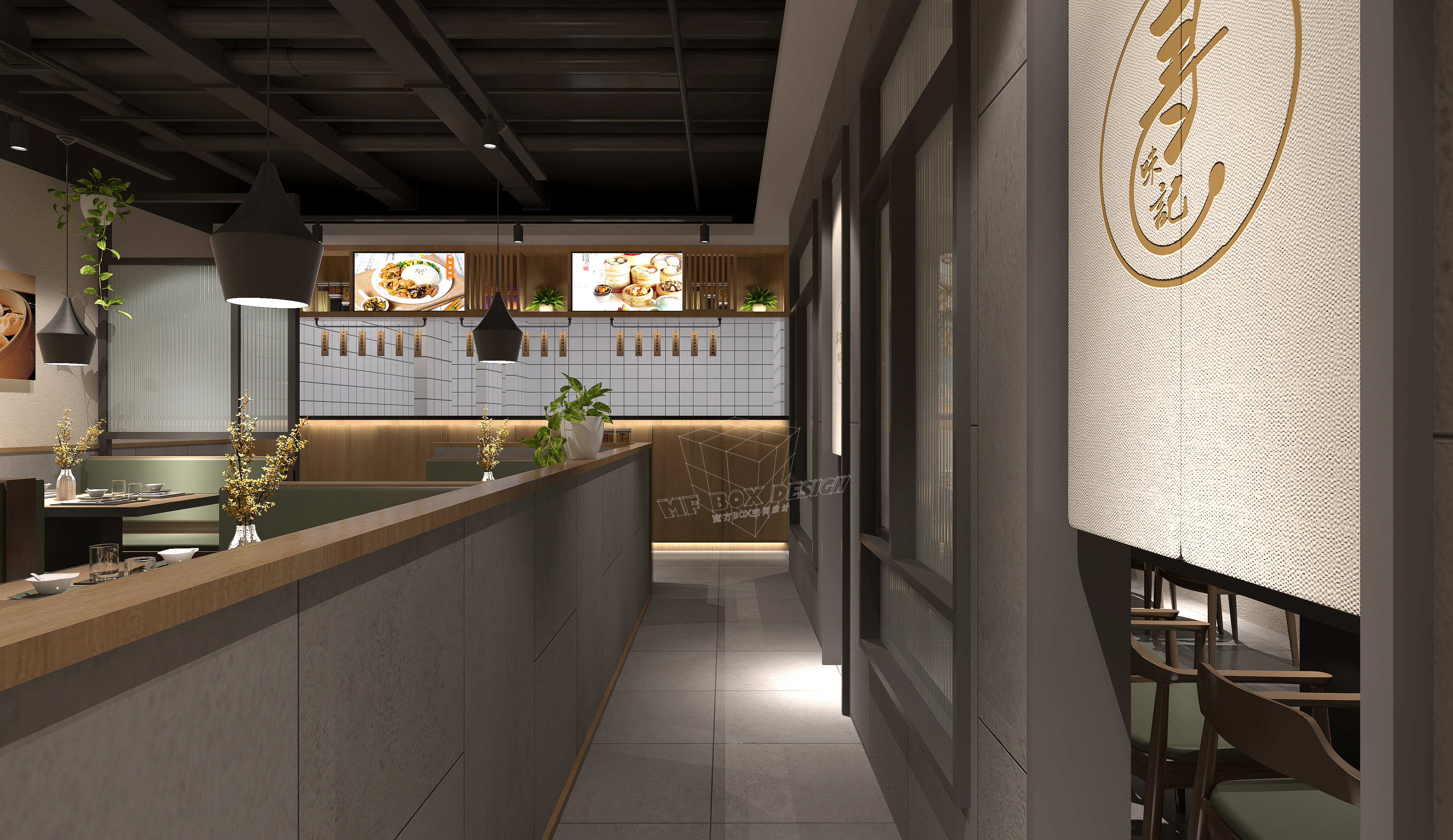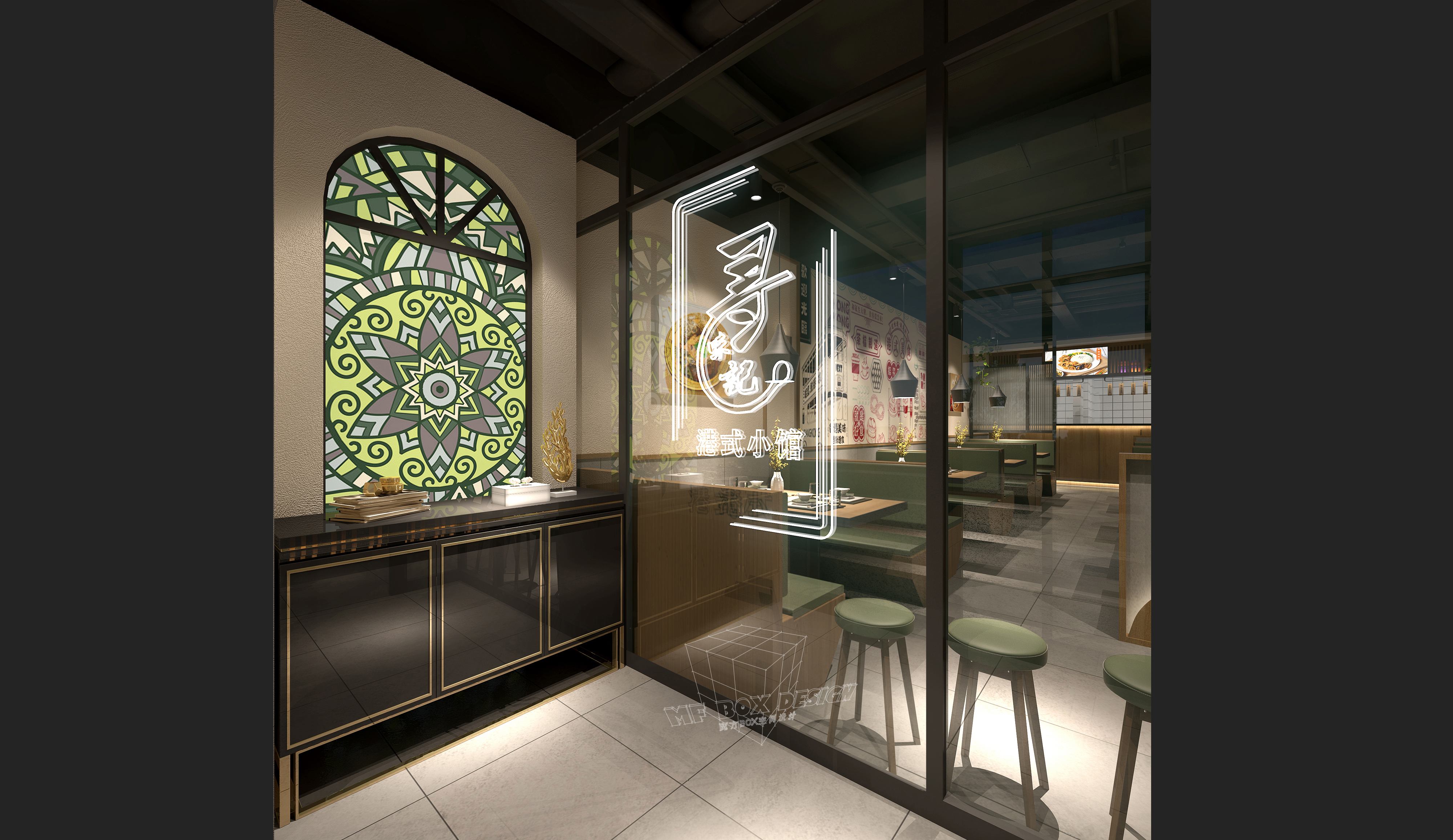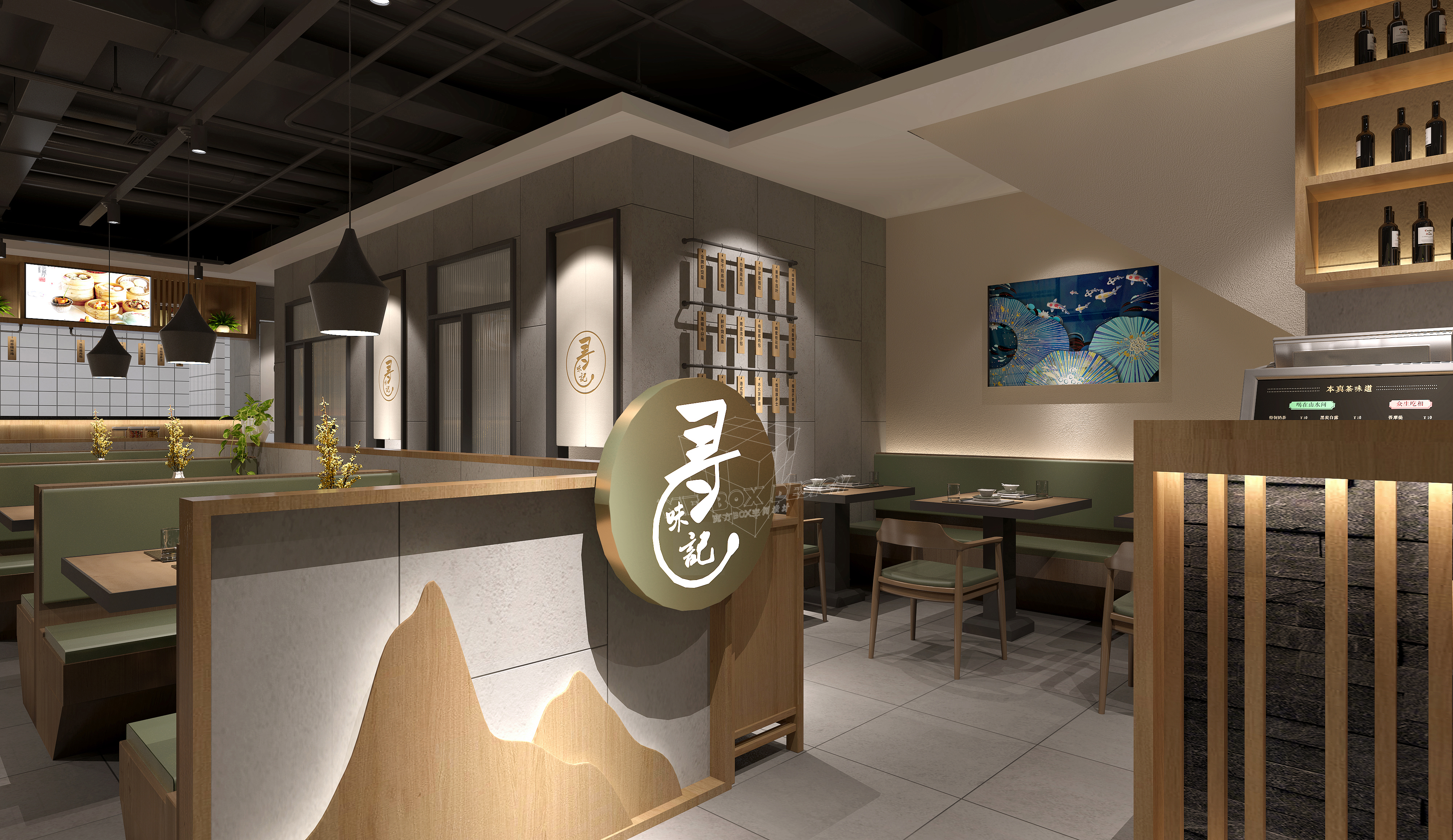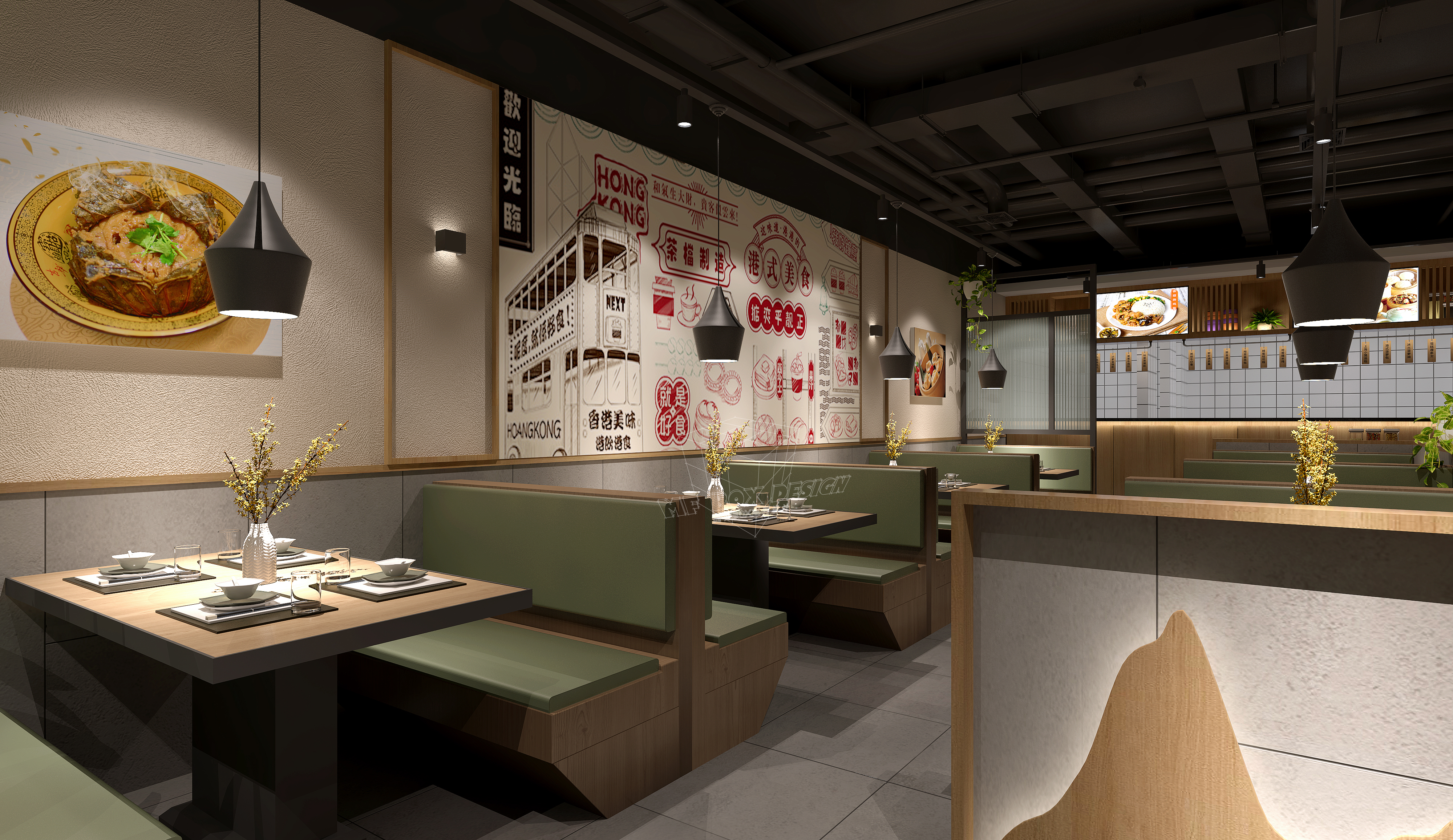 精心打造低沉本港式小店,一个灰绿色系餐厅,悄无声息的带来春天的气息,唤醒整个空间的生命力,也唤醒人们心中的美好和希望。