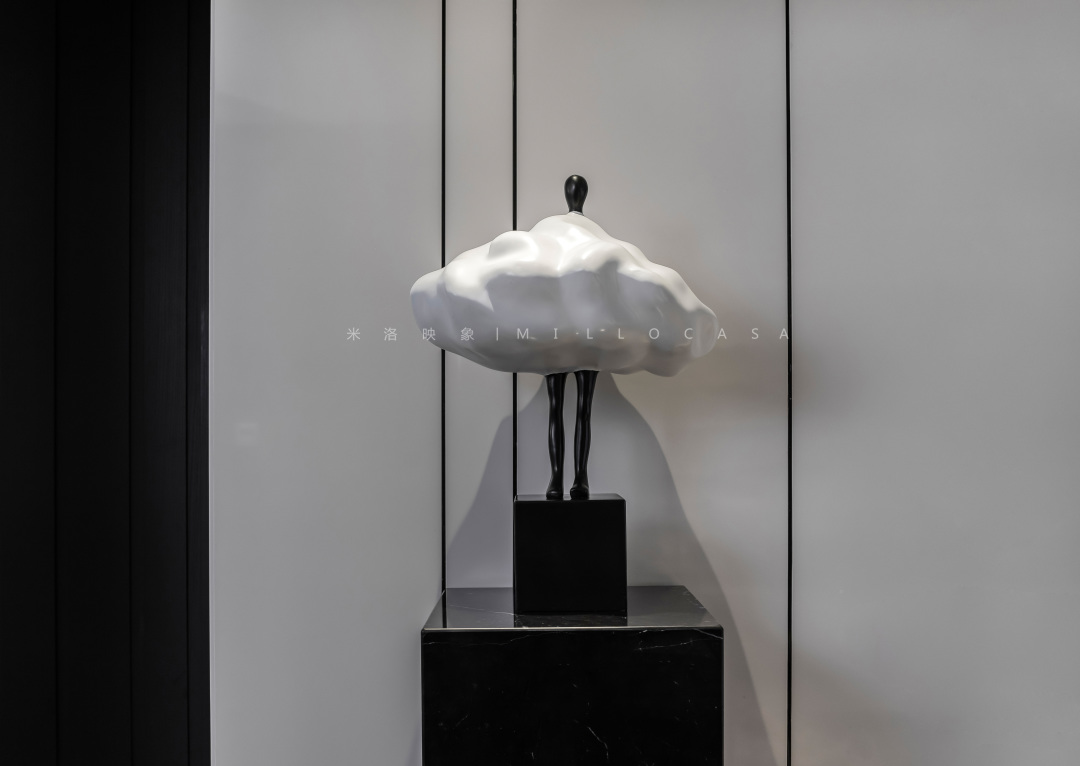 生机勃勃的绿植,空间多了几分清新之意,也为空间增添了更多活力,而云朵般的艺术装置品,则弱化了空间的单薄感,让视觉变得丰盈。
