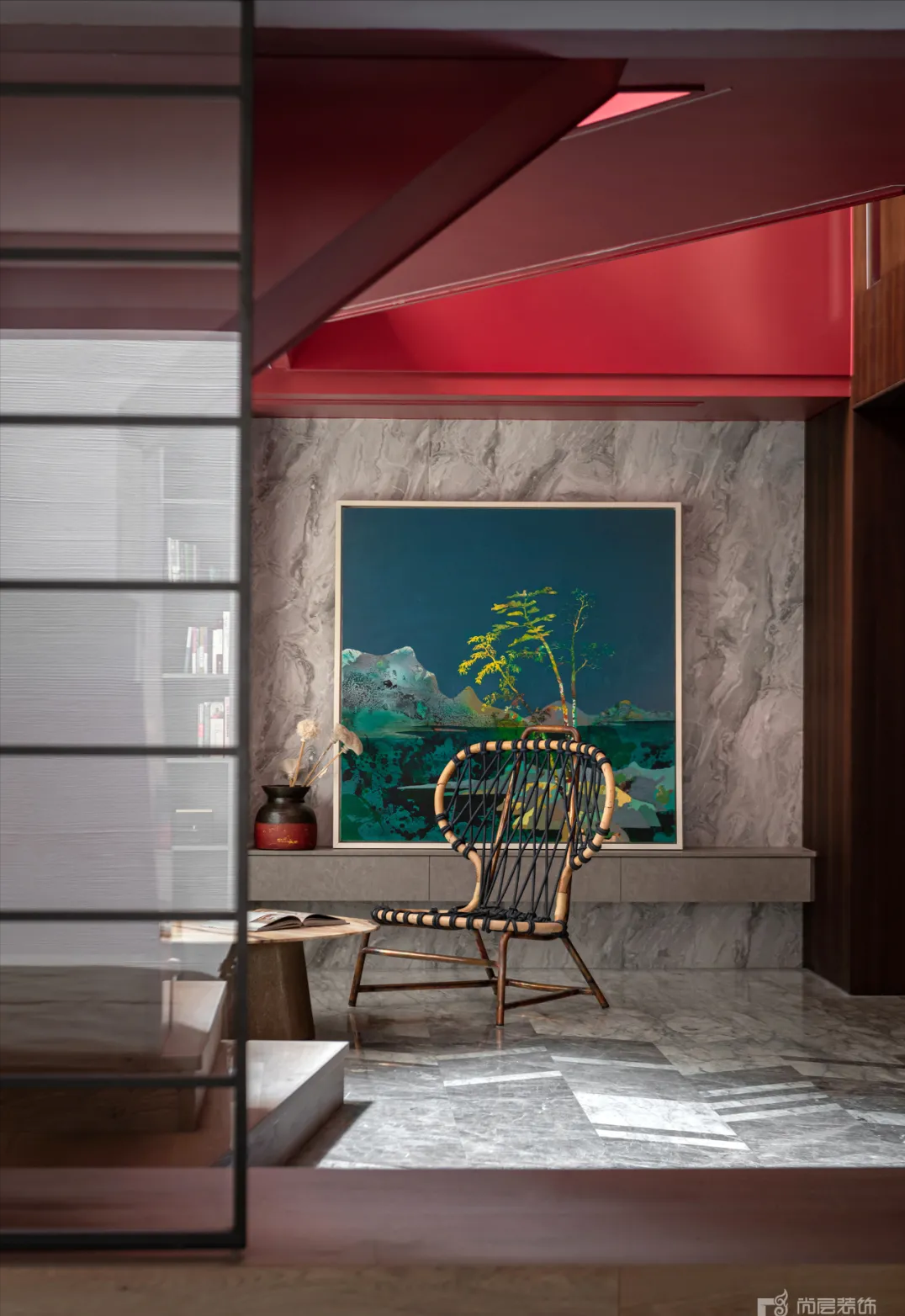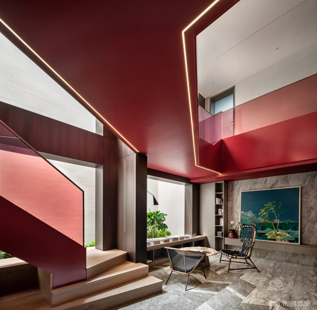 挑高的地下空间以红色串联,让楼上楼下的空间和谐统一,增加了交流体验。错落有致的设计造型在丰富了空间层次的同时,又保留了空间整体的秩序感,一眼望去舒适大气、时尚前沿。