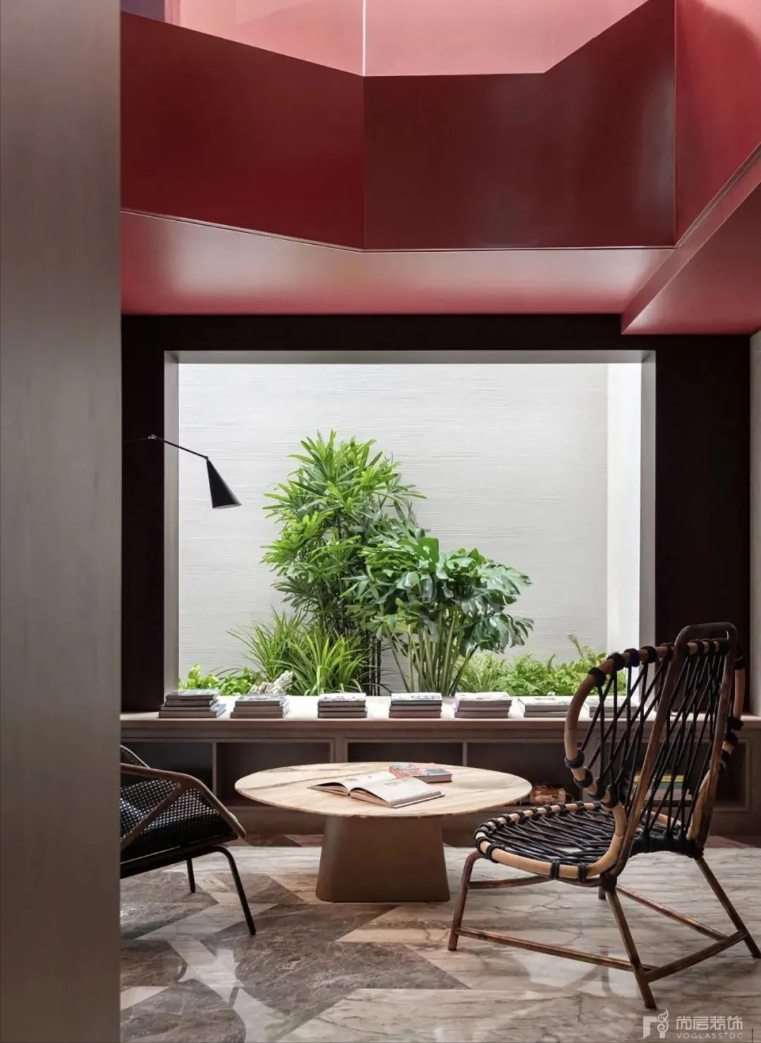 初阳升起,阳光从天井倾泻而下,不仅赋予了空间精致时尚的视觉感受,更唤醒了一室的悠闲,青翠的绿植在阳光的掩映下相映成趣,为我们带来一天的愉悦心情。