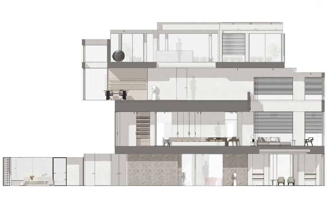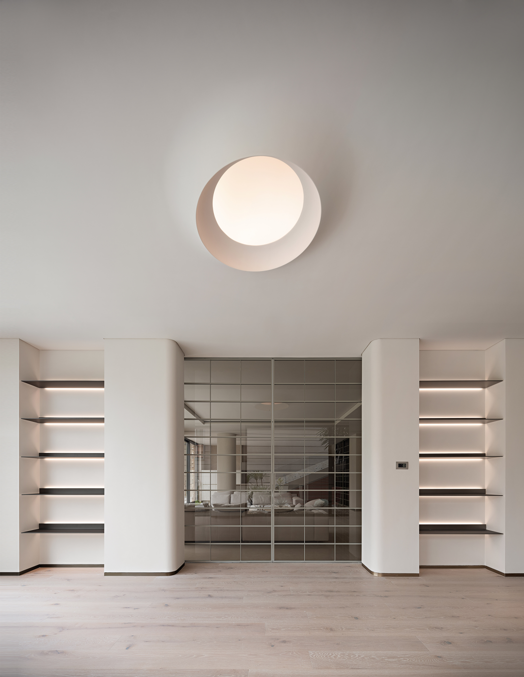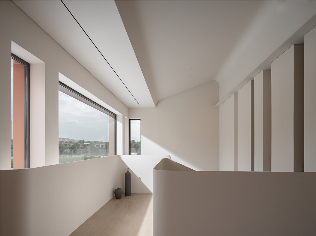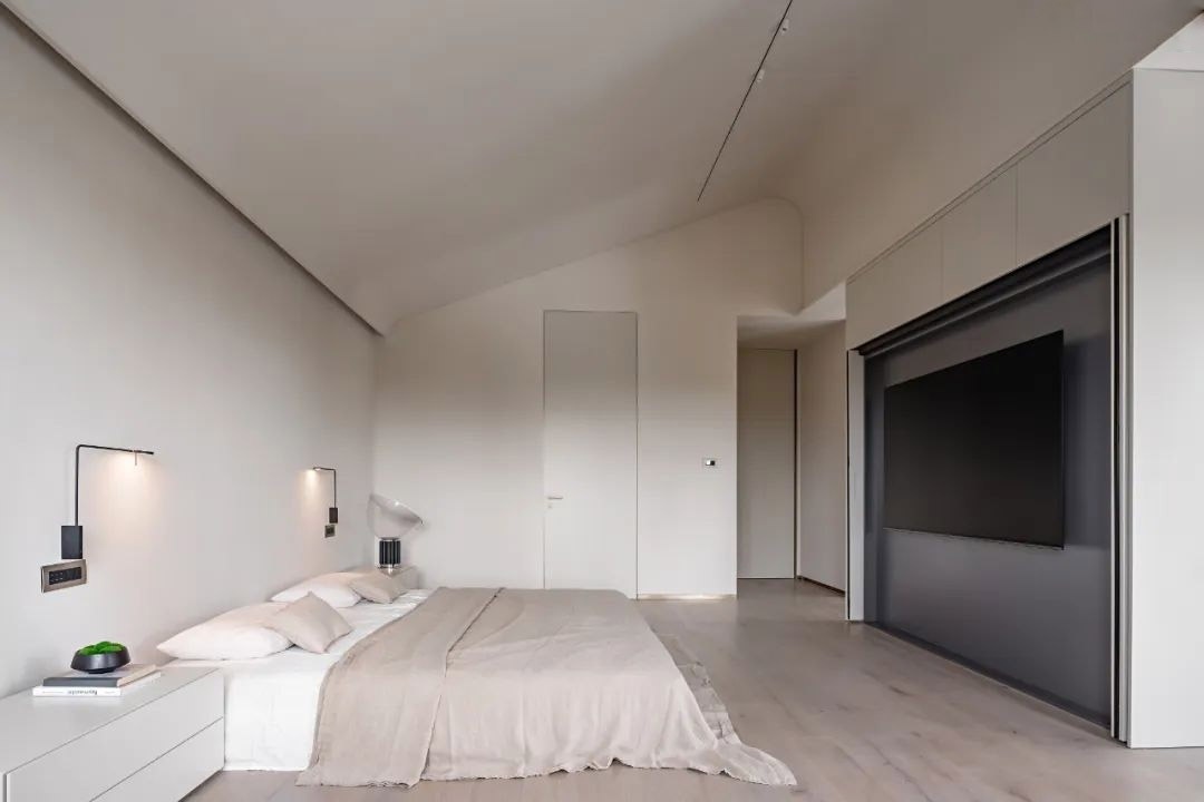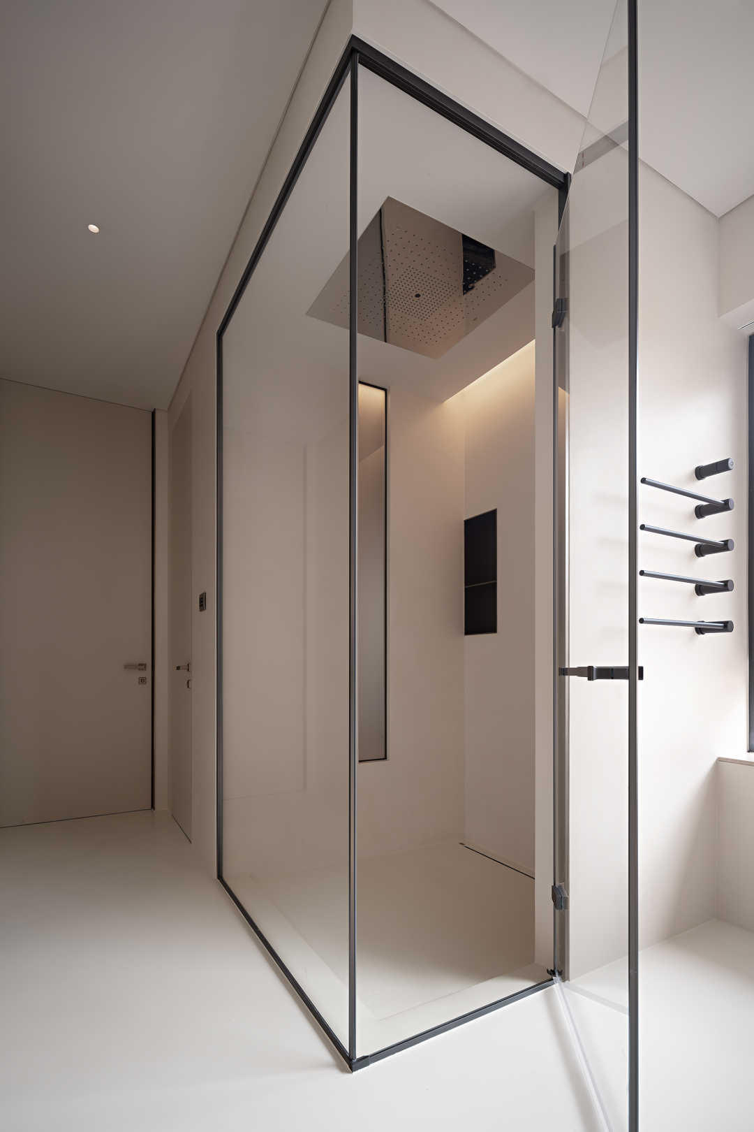 为了使整个项目自然纯粹,在材料选择上,我们尽量减少材料的种类,所以整个项目的硬装材料只有两种涂料,一种岩板,一种石材,一种木地板,而且几种材料的色系都是统一的,以这样的方式呈现意味着对空间感,工艺,细节,产品都提出了更高的要求,不然整个空间会平淡无奇。