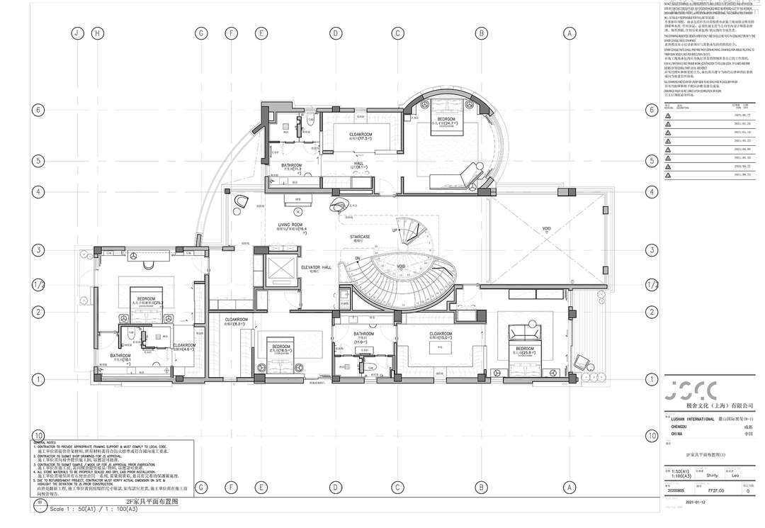 拿到原设计平面布局图,发现平面可以优化的空间还比较大,我们重新梳理了空间与空间之间的尺度关系,主人动线和服务动线的关系。整栋别墅共4层,建筑中心的弧形楼梯和电梯串联起竖向交通,我们把原电梯的位置调整一下,使电梯和楼梯之间的交通更直接,这样可以近一步缩短不必要的过道空间,电梯的调整对整栋别墅的动线和空间都提升比较大,尤其对于三楼主卧空间,这样卧室卫生间衣帽间三个空间可以整个南北贯通,形成一个环形动线,空间利用率和实用性大大提升。