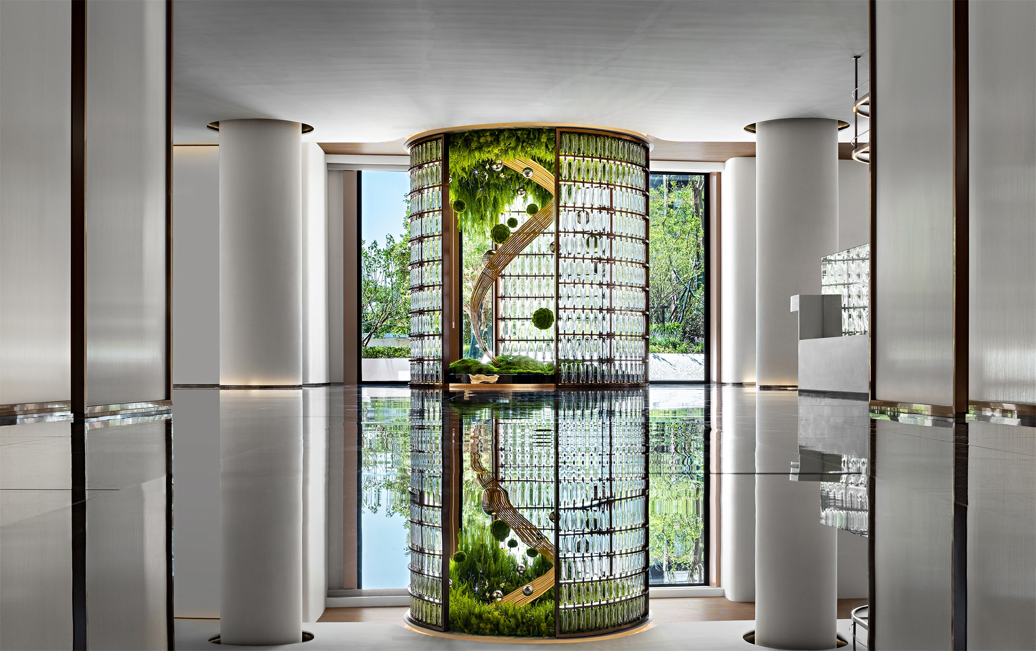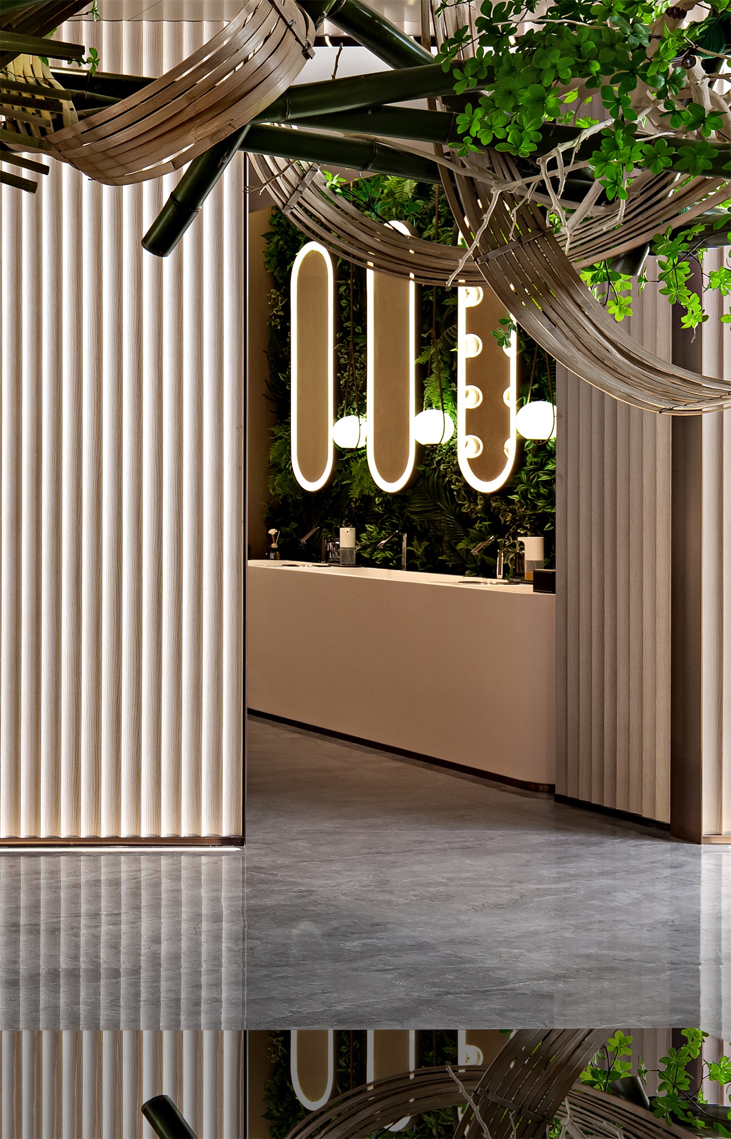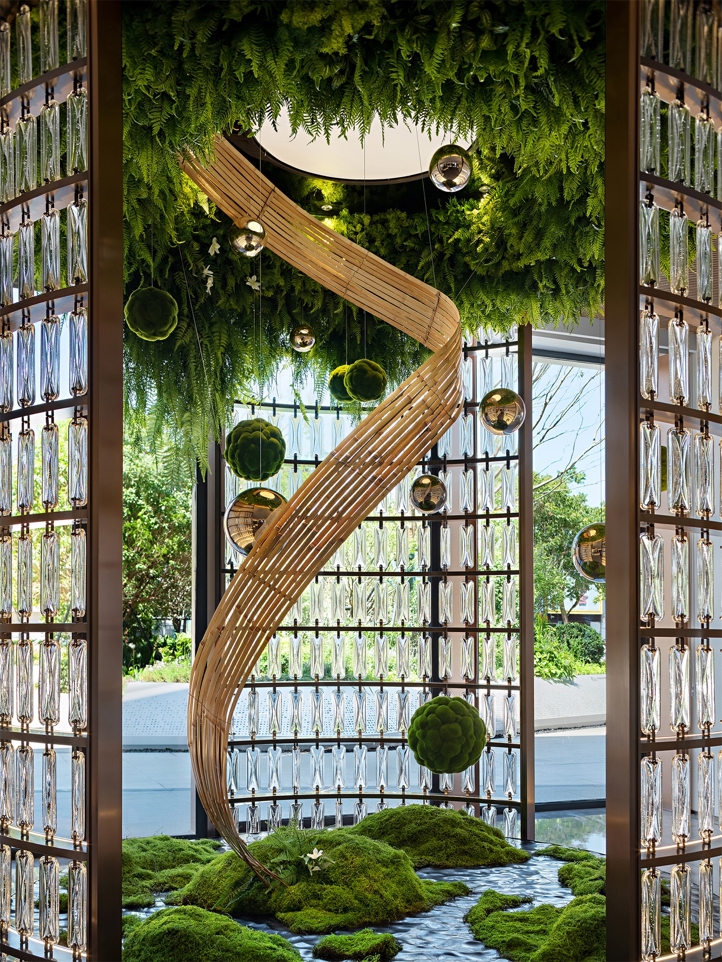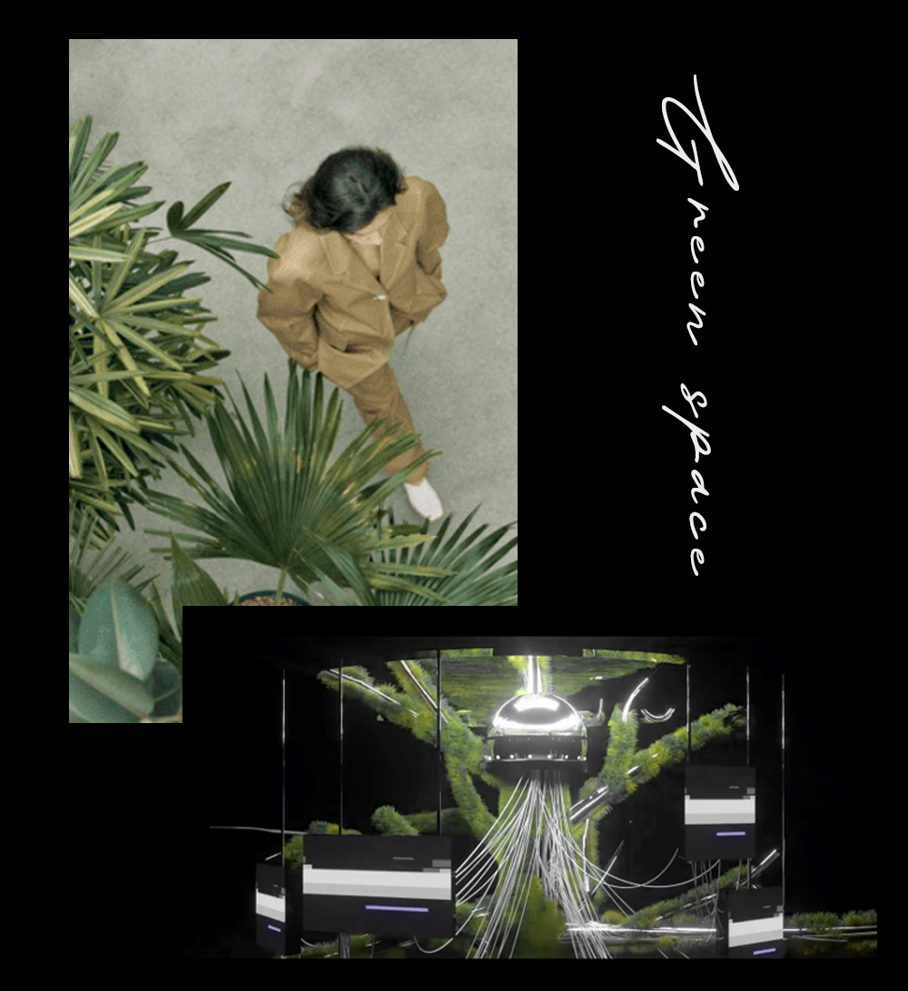 森林绿唤醒空间沉睡已久的觉知,感官沉浸于虚实相应的奇境中。从未来语境下设想,让植物穿梭、溯回、解构、重塑,目之所及、耳之所闻、心之所向皆是美好诗意......