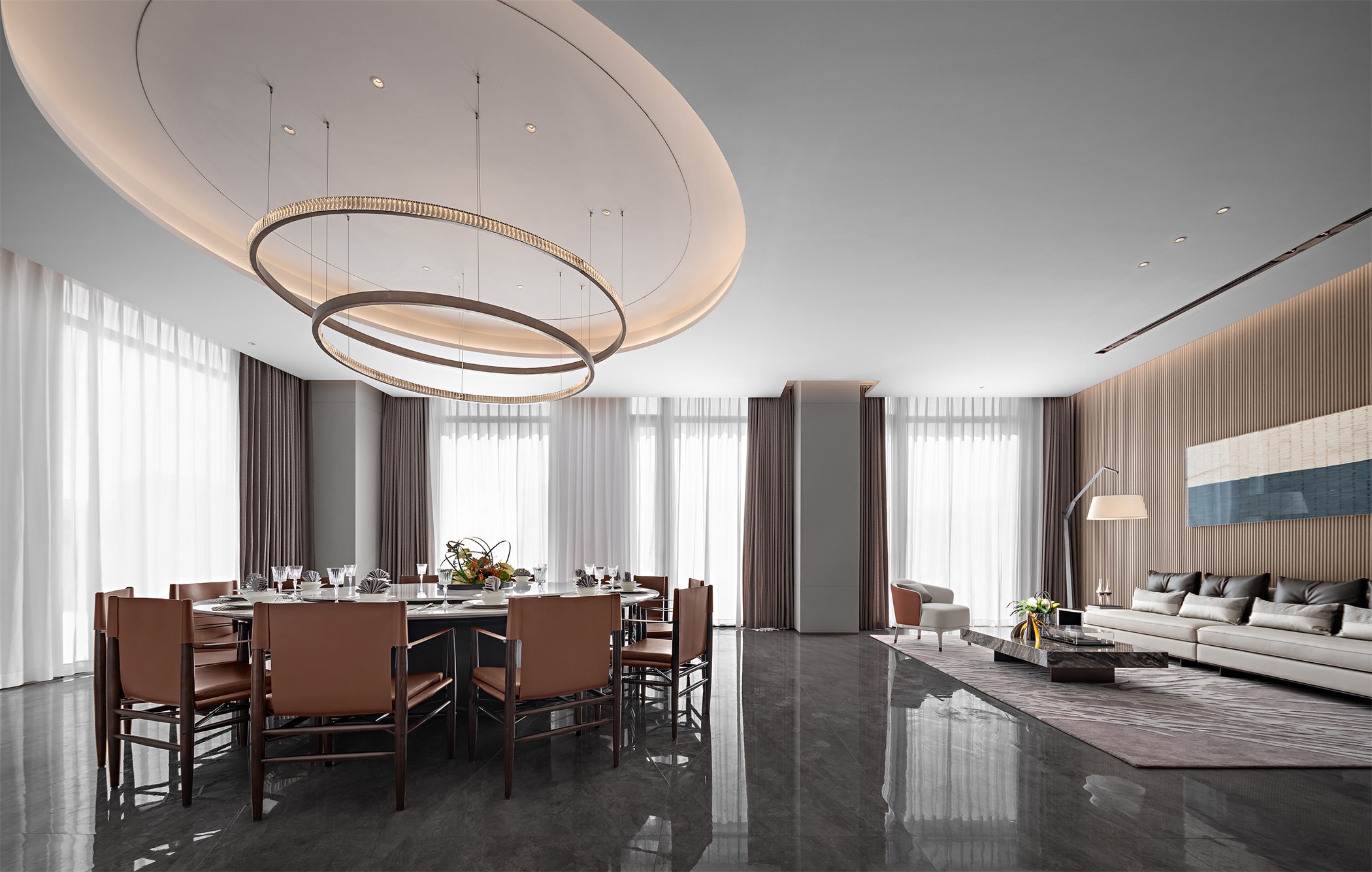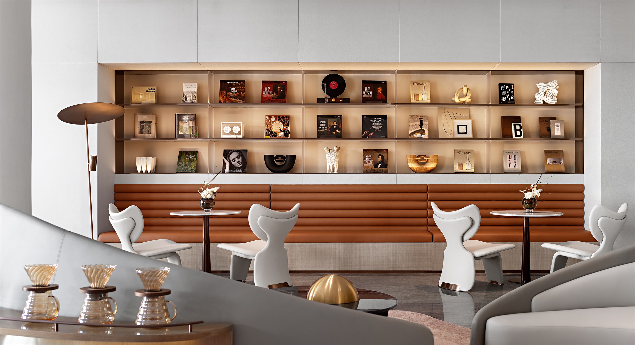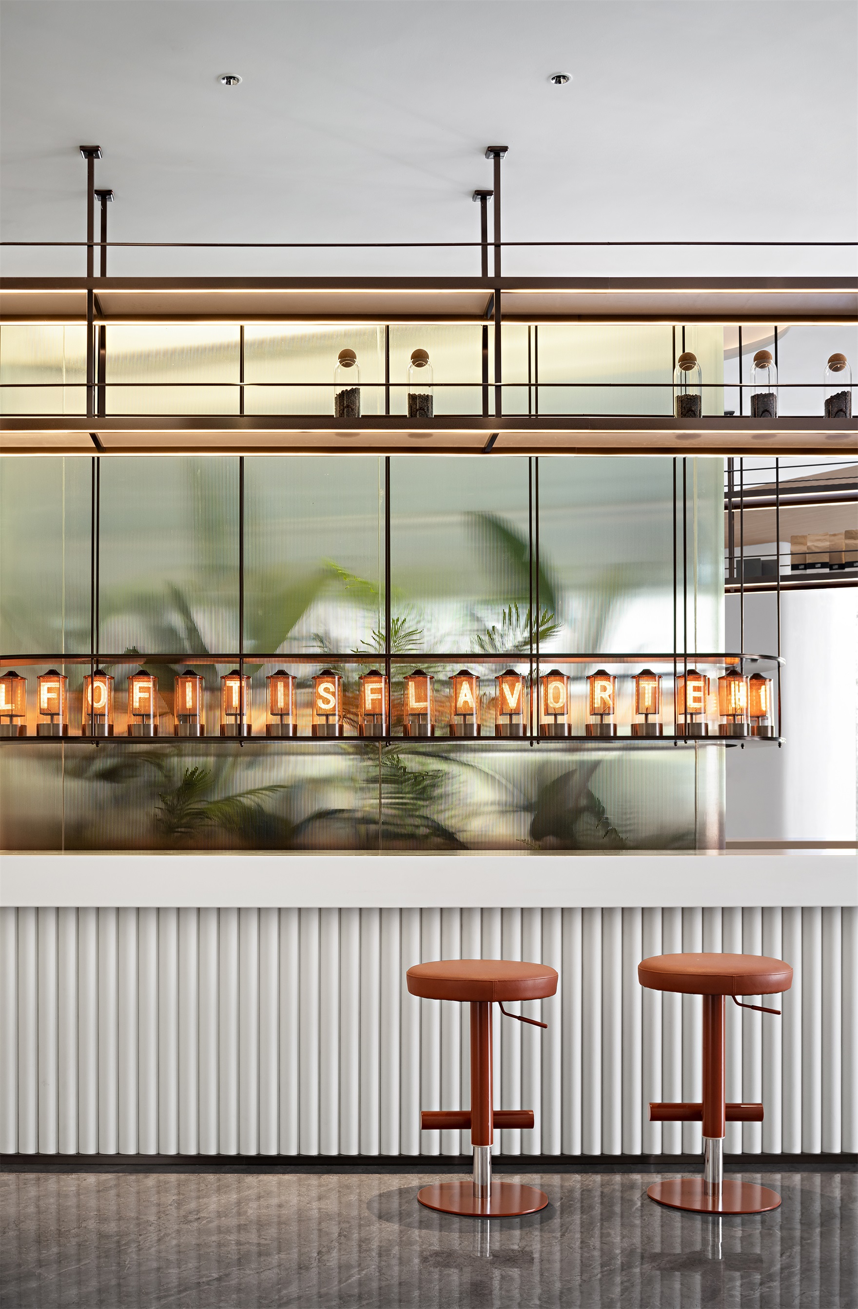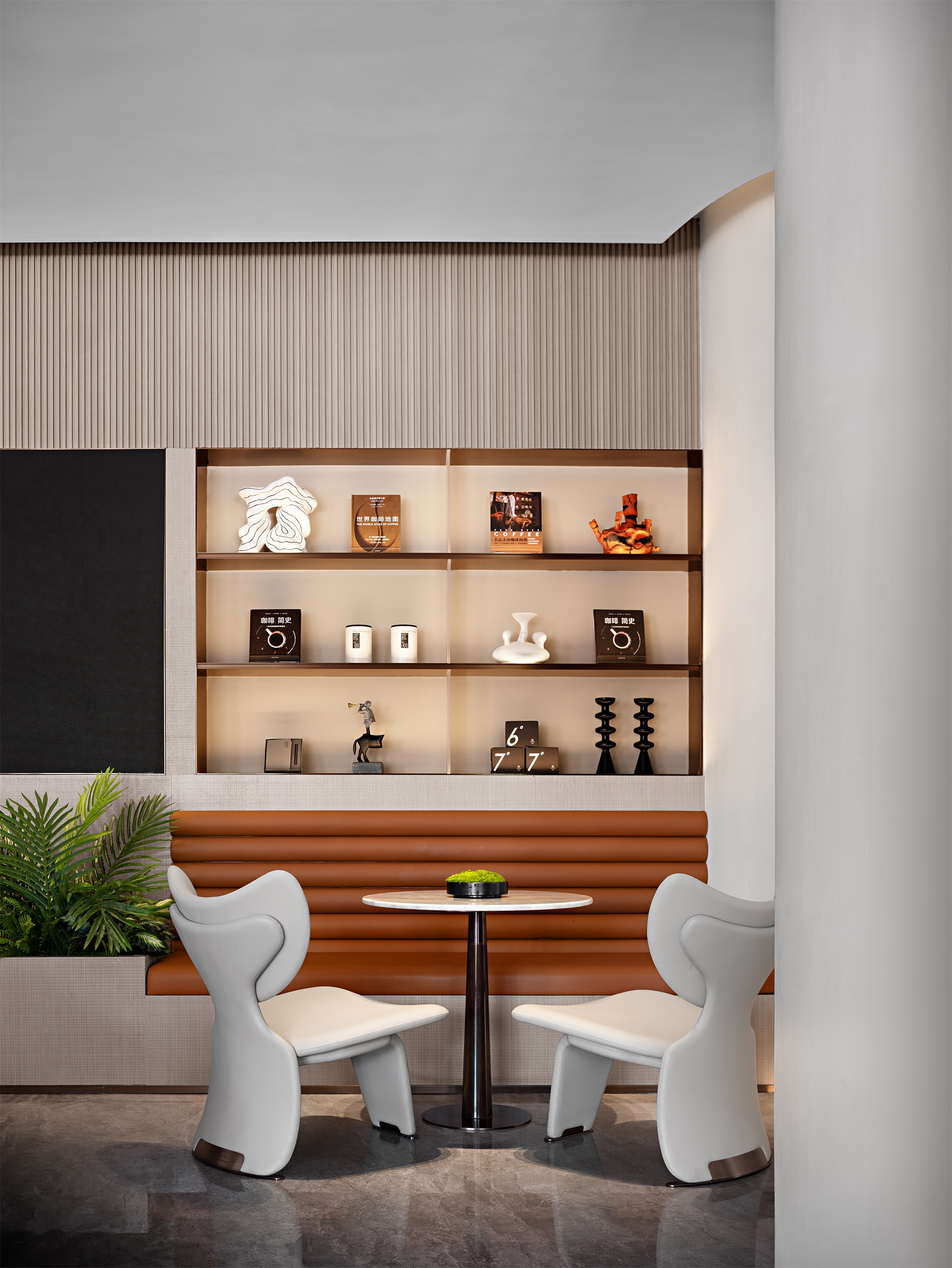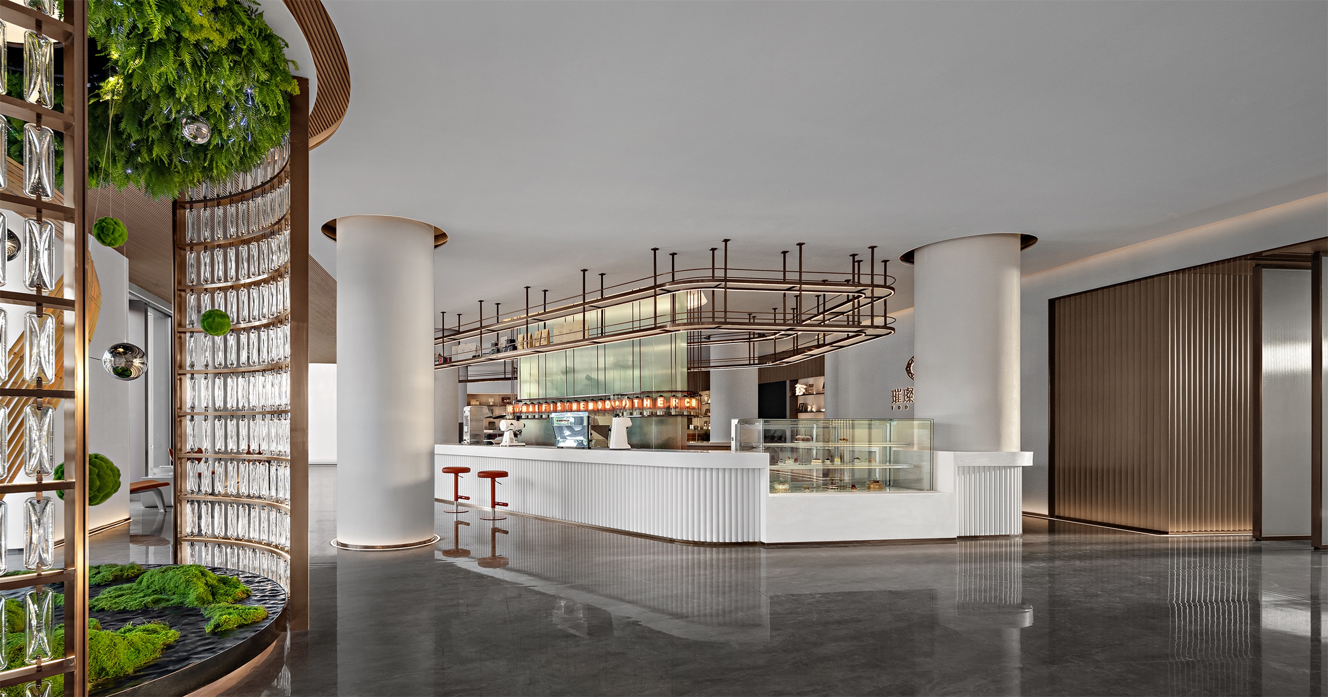 围合、竖列,四向的纵深感无形划分动线,若有似无的边界,进退得宜。