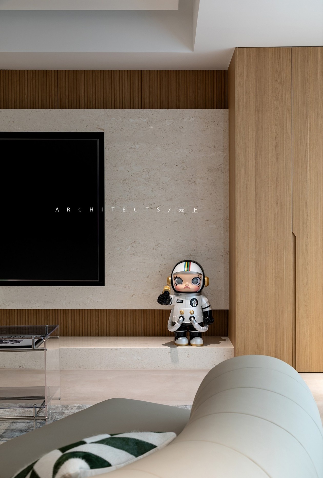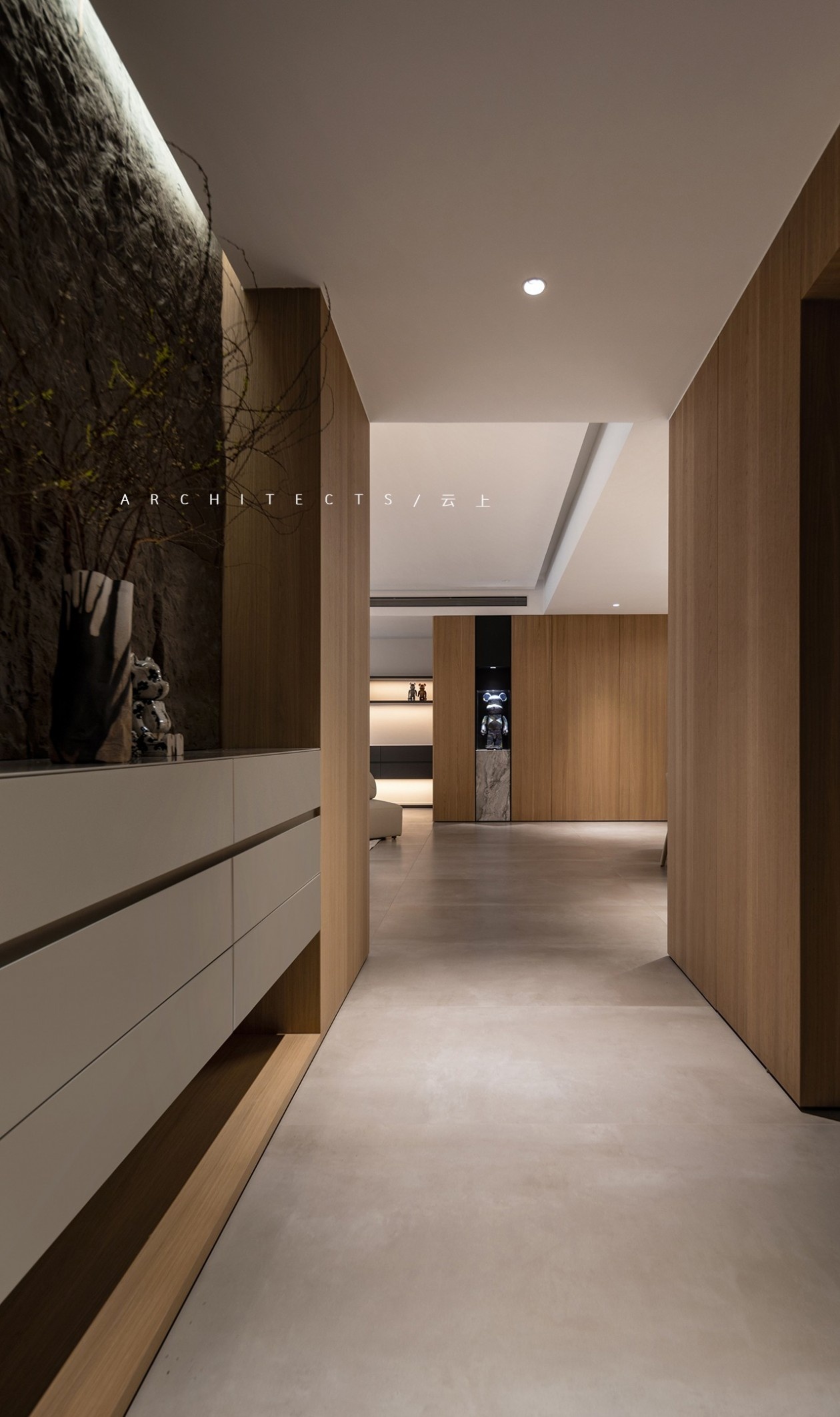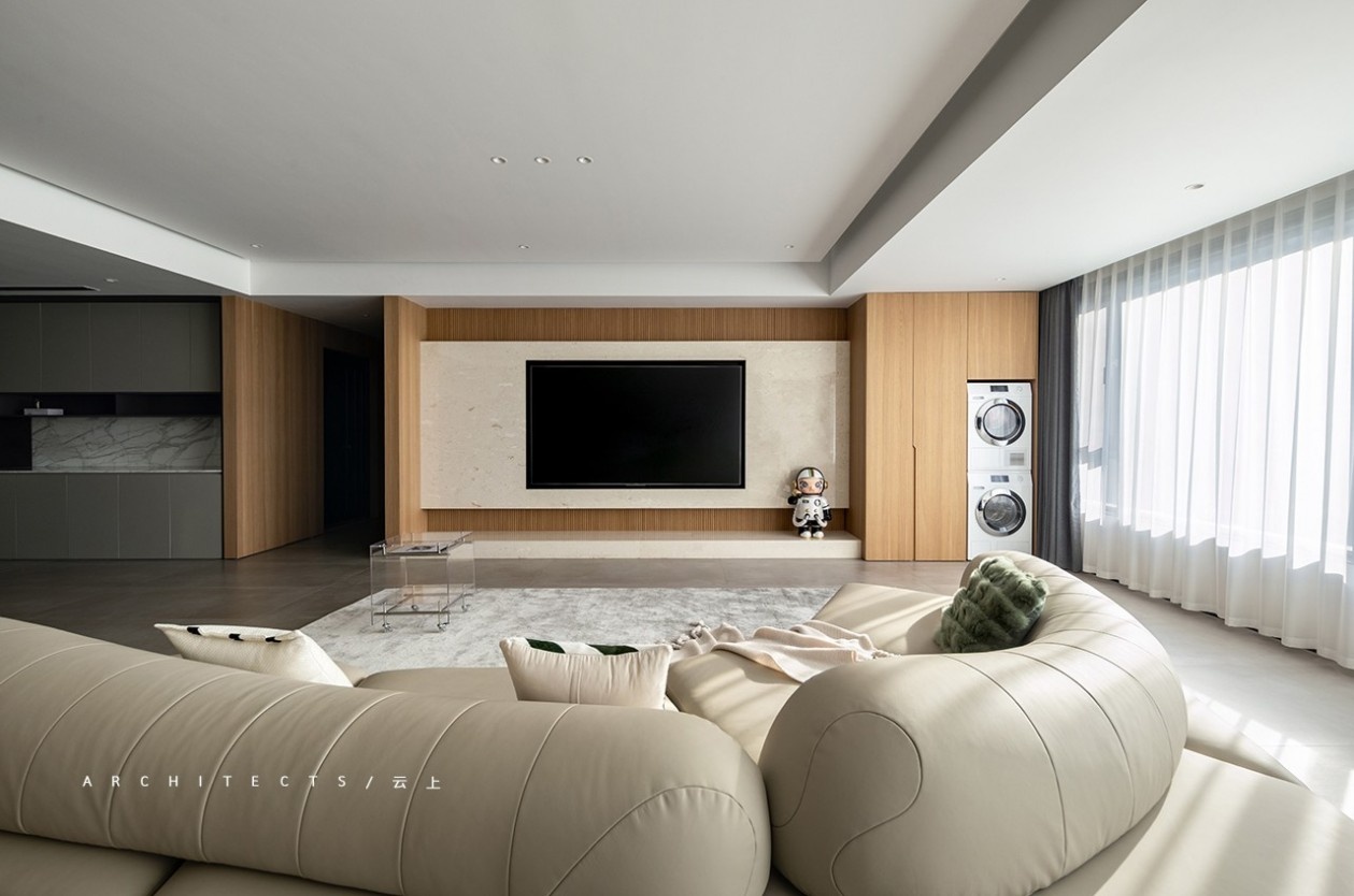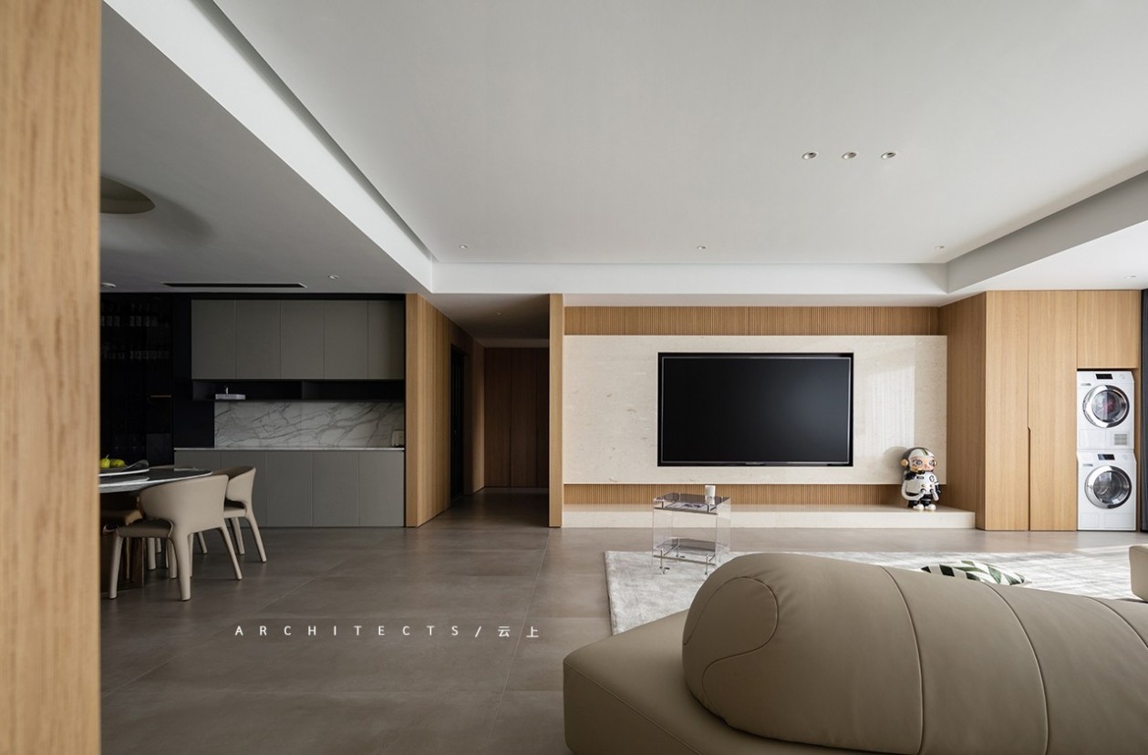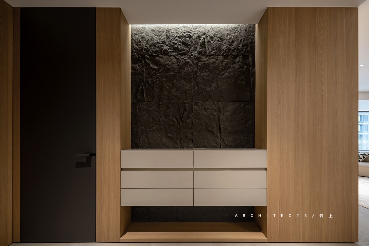 暖色木材的映衬,让空间柔和宁静,传递平实单纯的温暖质感。