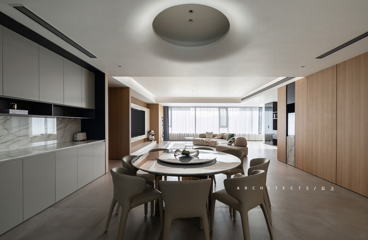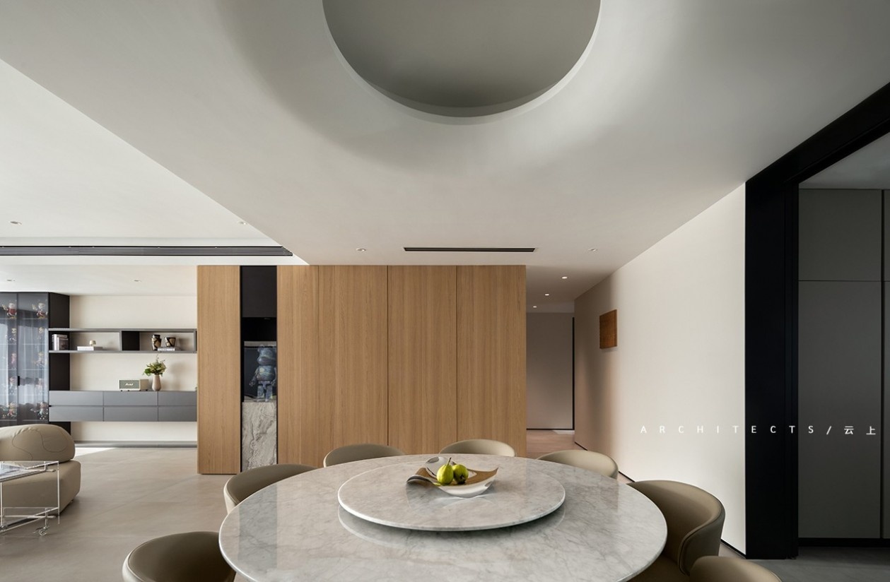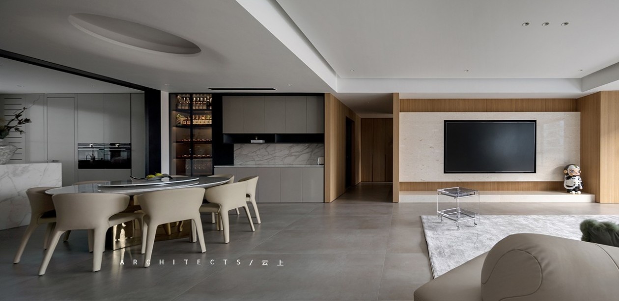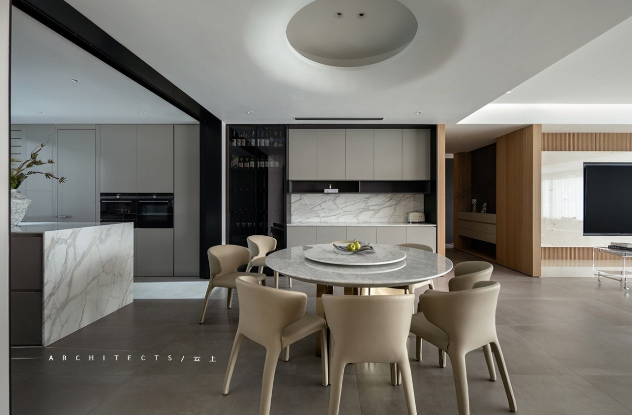 大理石、木饰面、金属质感、艺术漆等不同材质的填充,赋予空间动态多元,