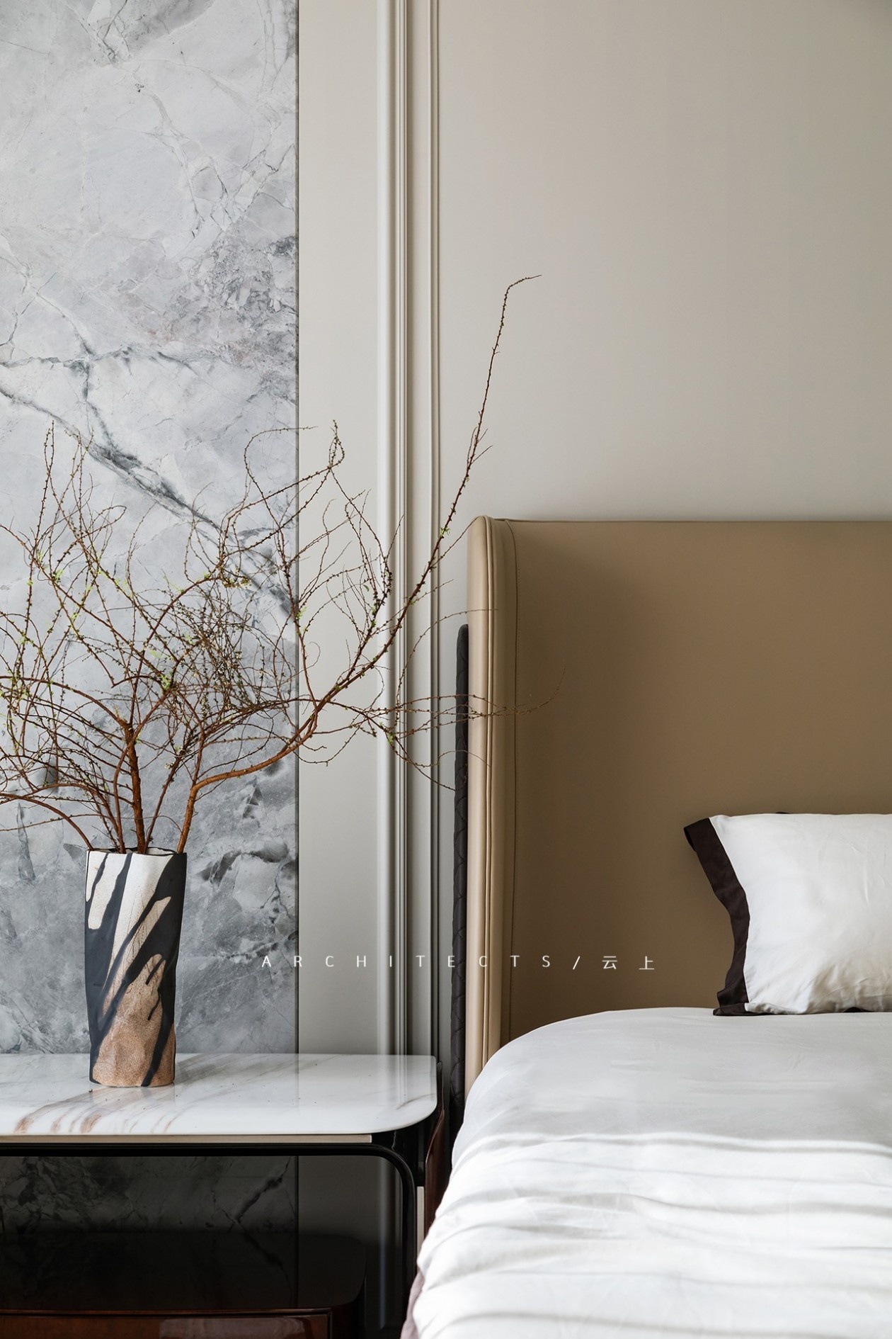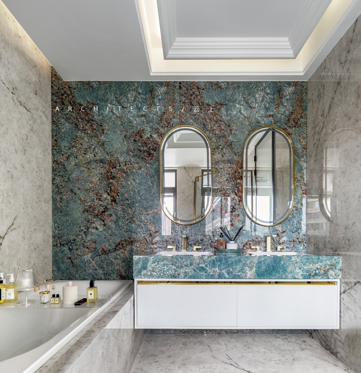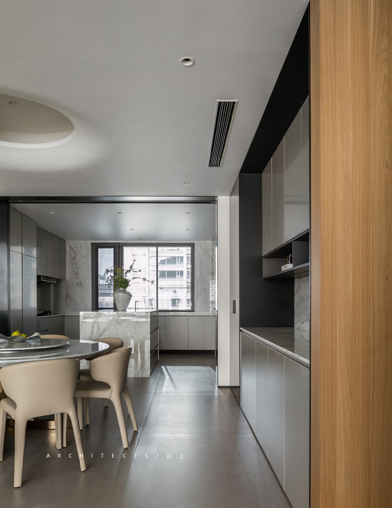大理石、木饰面、金属质感、艺术漆等不同材质的填充,赋予空间动态多元,