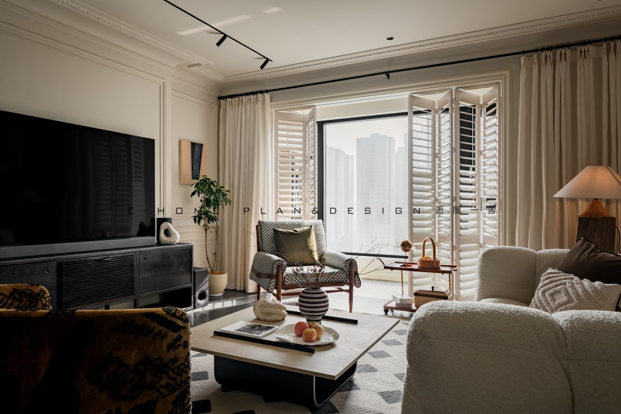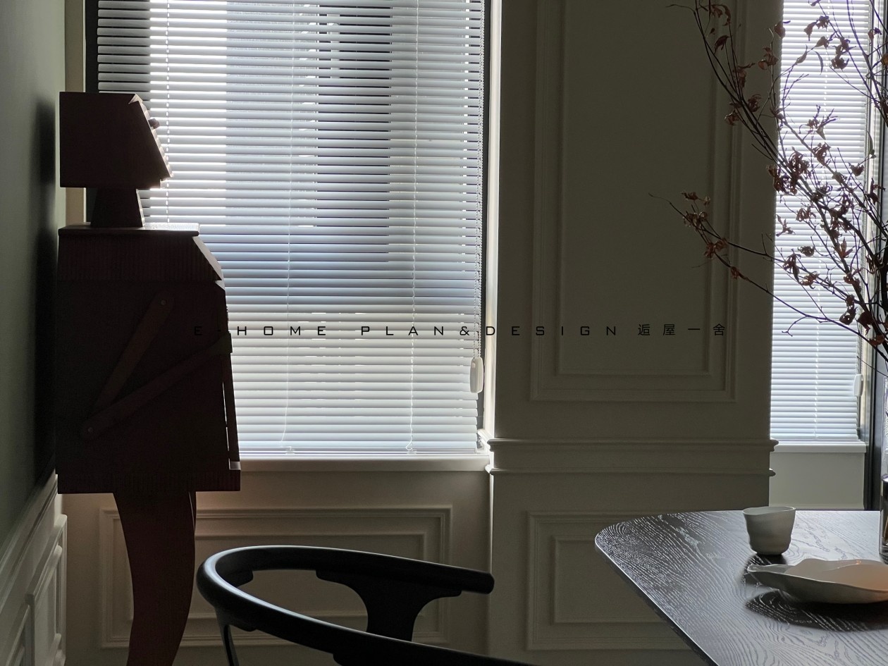 进入这家的客厅,就像踏进某个电影片段,自带故事感的氛围。三人位沙发,加入两个风格迥异的单椅,原本是传统布局的客厅,却以百叶窗和屏风的运用更加出挑,阳光一缕一缕驶进。