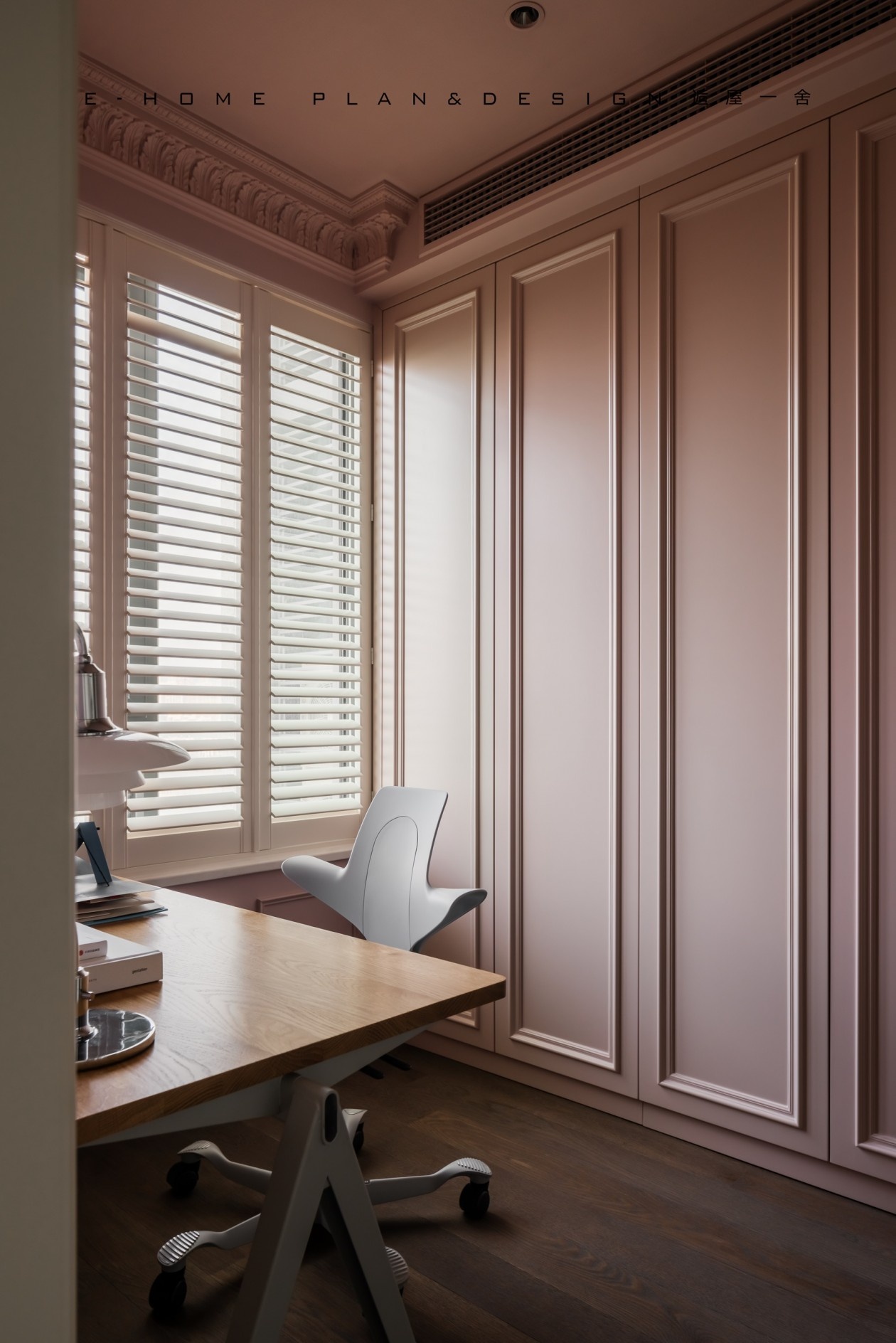 这个迷你套房源于两个房间的打通,用百叶门作为隔断,里面是纯粹的休息空间,外面是独立的写字台和衣帽间,如果有小朋友招待,还可以作为一个专属的游乐区使用。